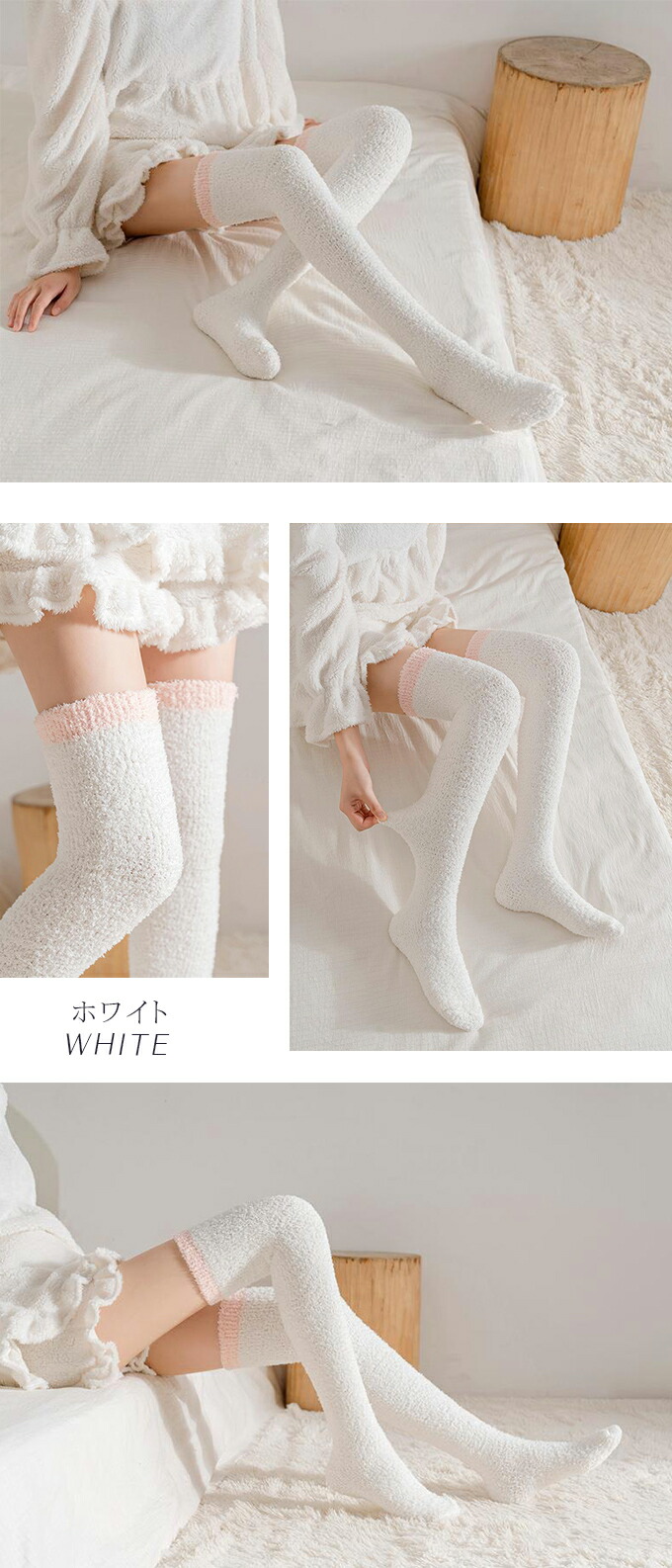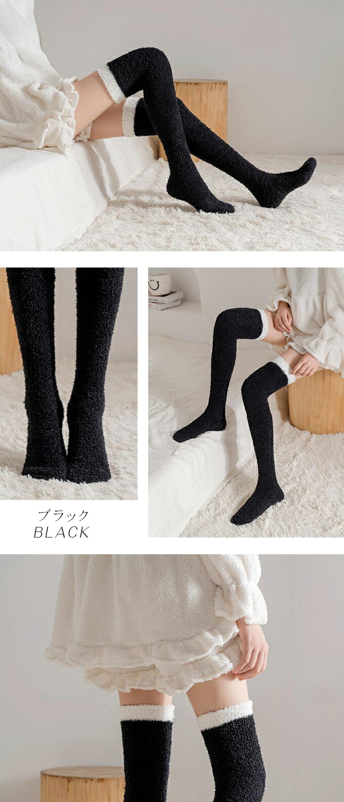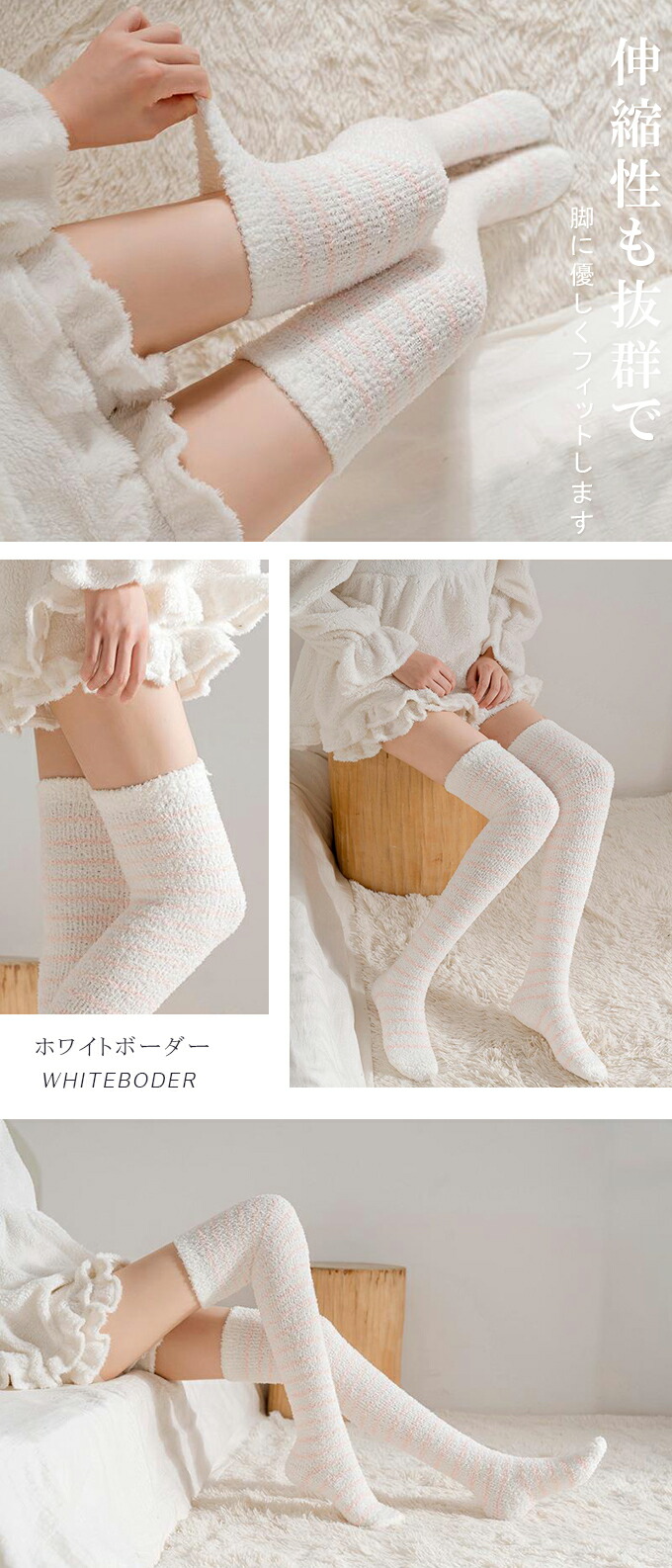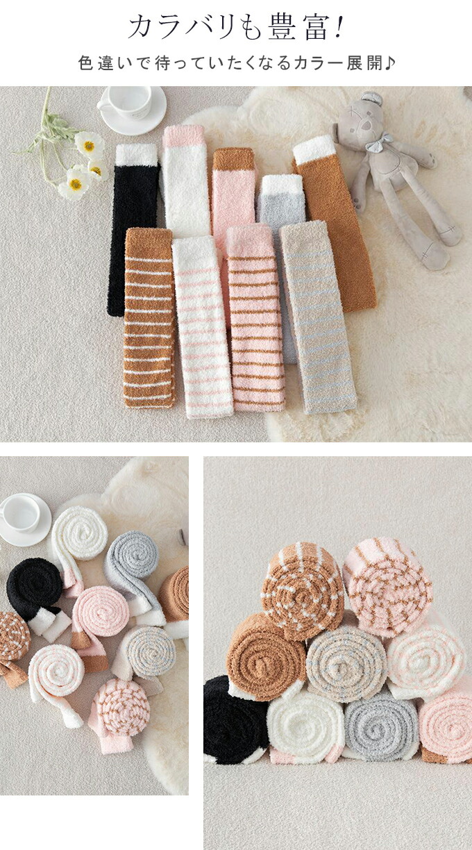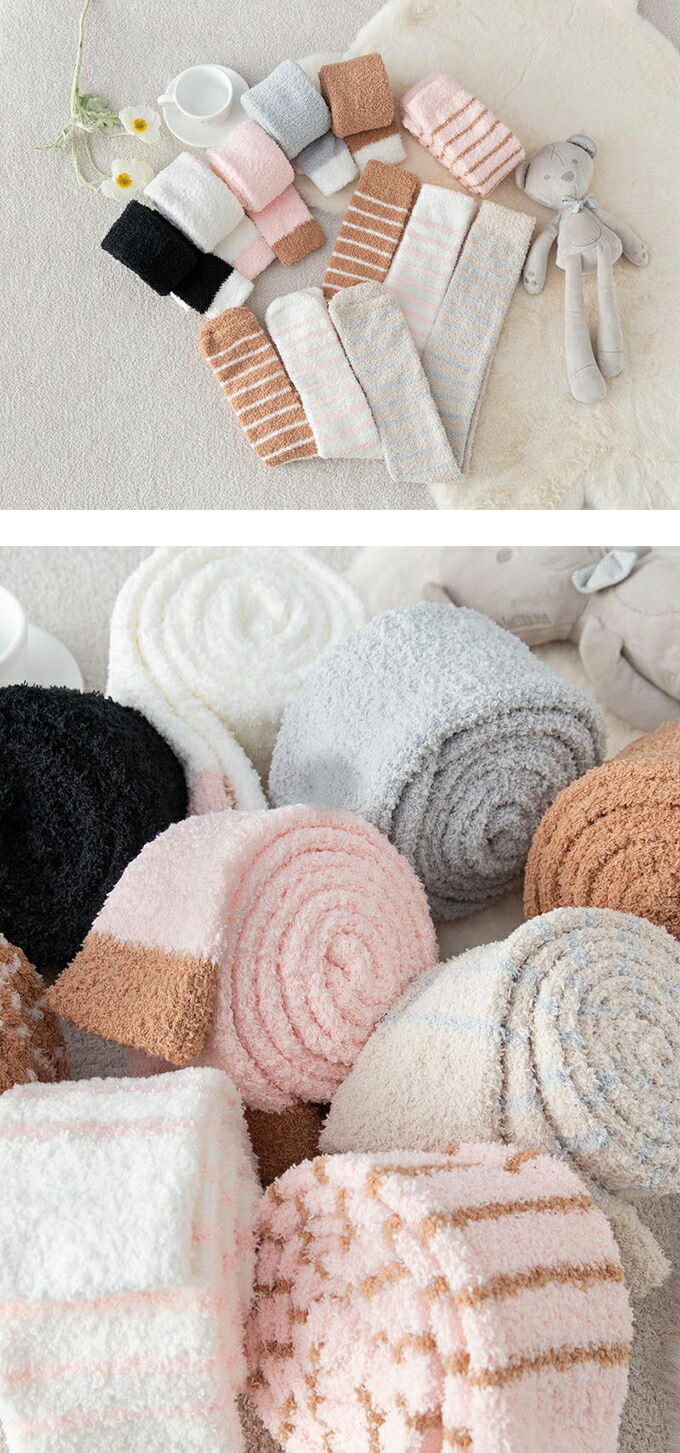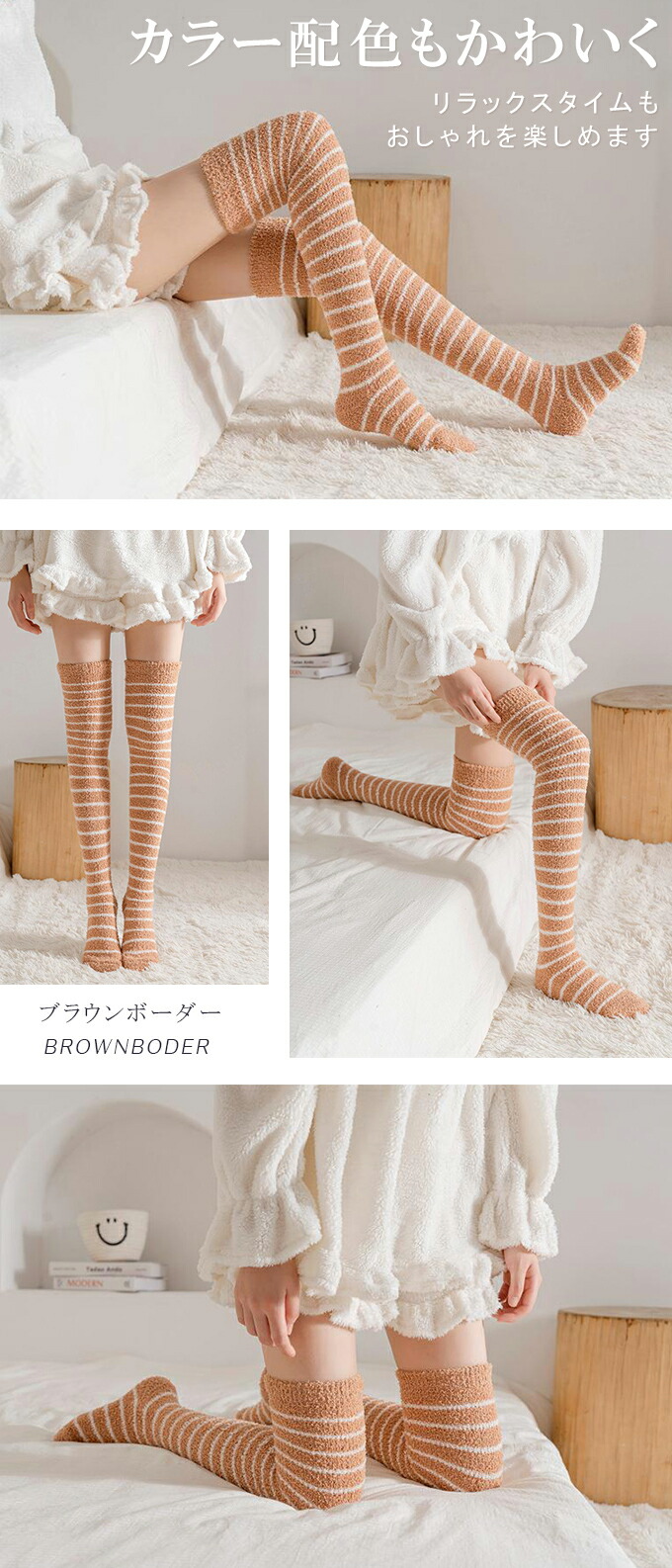 もこもこニーハイソックス ルームソック インナー 下着 ナイトウエア 人気 ブラック ピンク ホワイト ブラウン グレー ピンクボーダー ベージュボーダー ホワイトボーダー ブラウンボーダー
