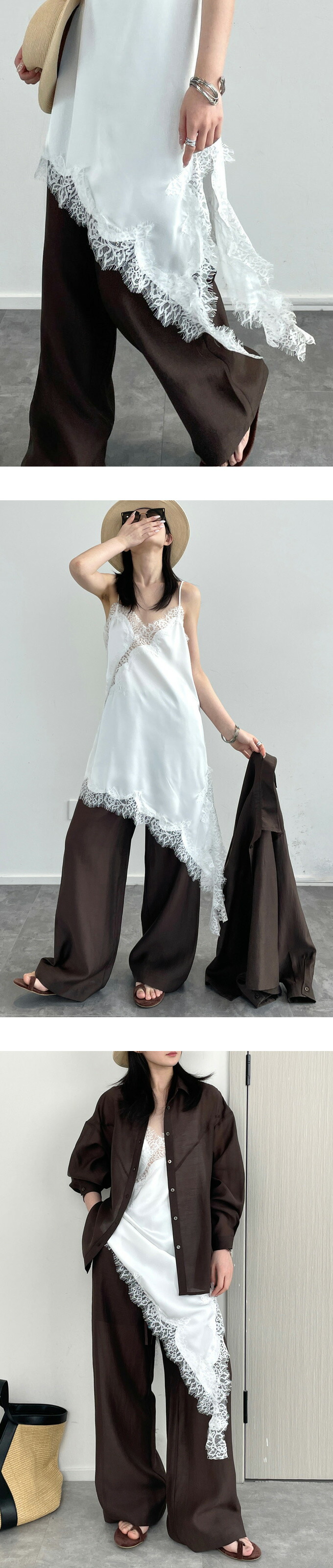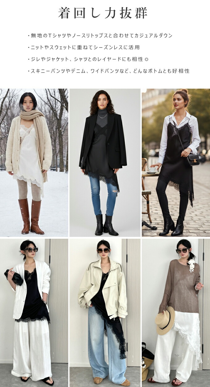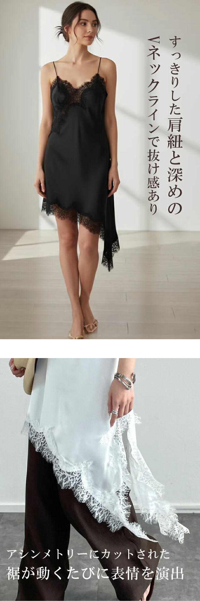 レース キャミソール ワンピース アシ レディースファッション 超目玉商品 ブラック ホワイト ブラウン Mサイズ Lサイズ XLサイズ