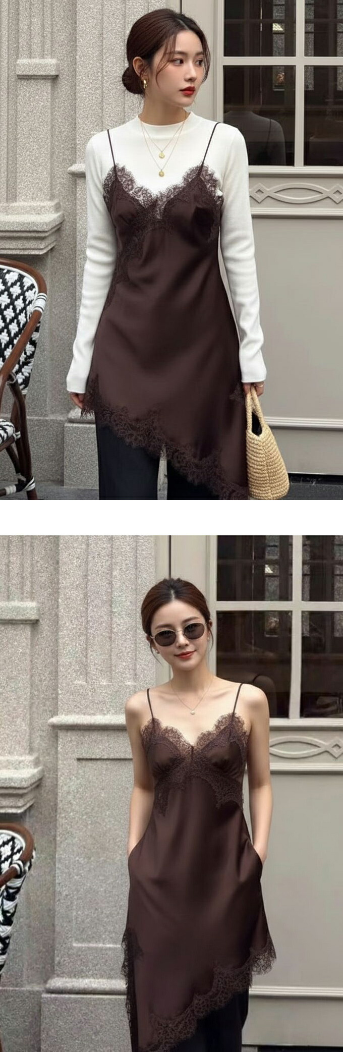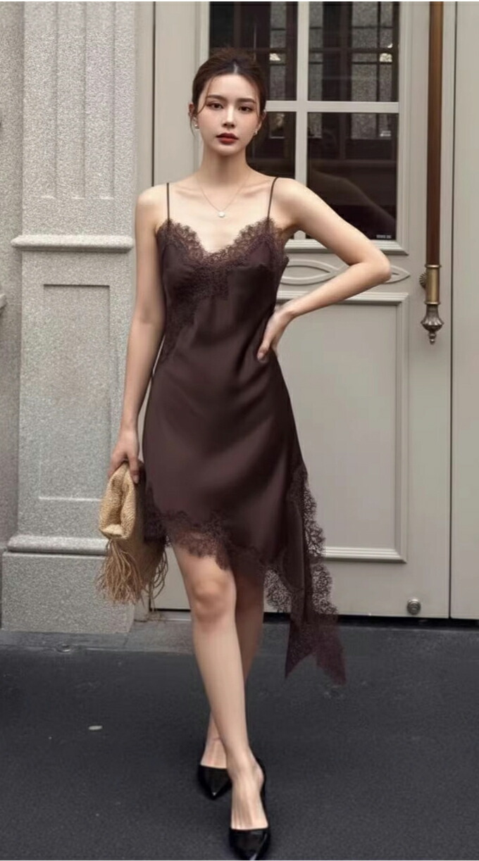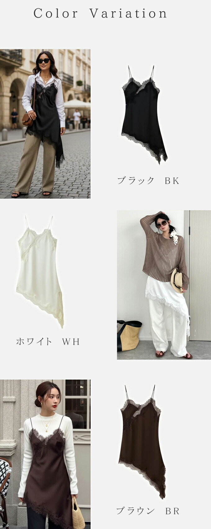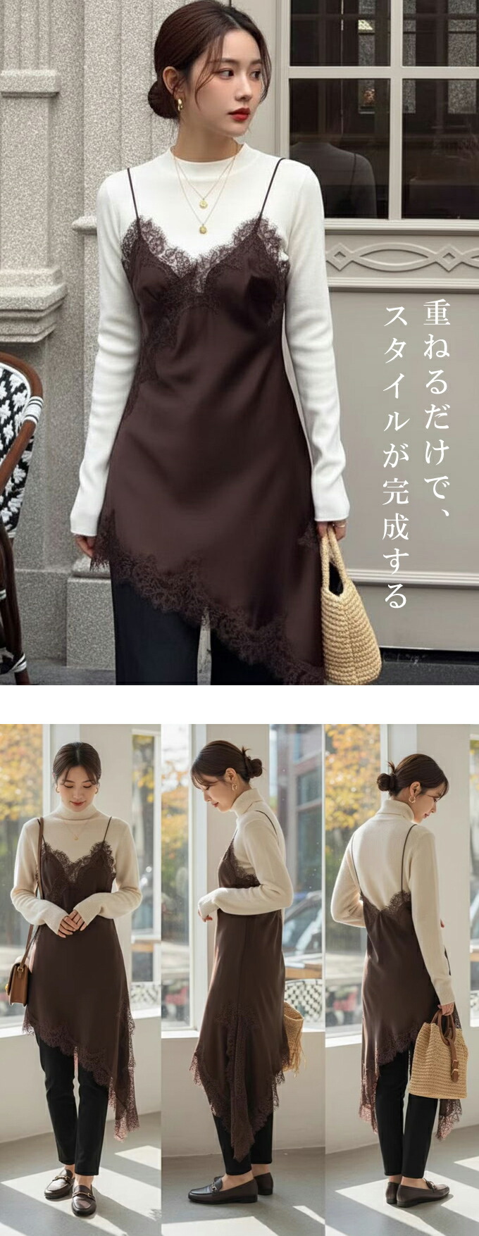 レース キャミソール ワンピース アシ レディースファッション 超目玉商品 ブラック ホワイト ブラウン Mサイズ Lサイズ XLサイズ