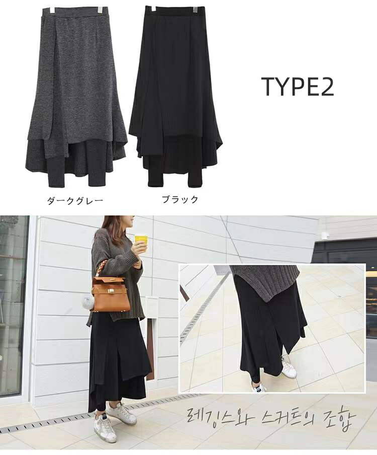 新タイプ追加 スカート付きレギンス レ ボトムス スカート 人気 ブラック グレー ダークグレー TYPE2-ブラック TYPE2-ダークグレー 薄手 裏起毛