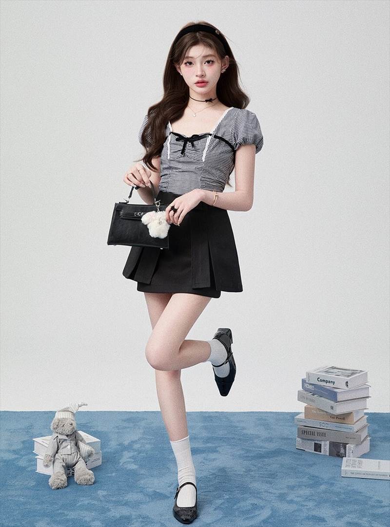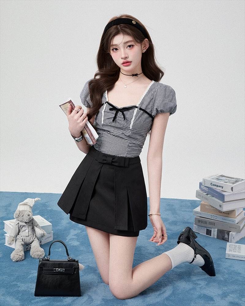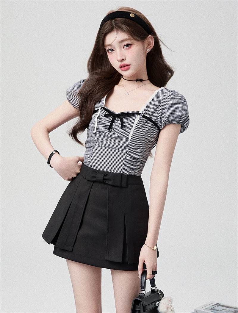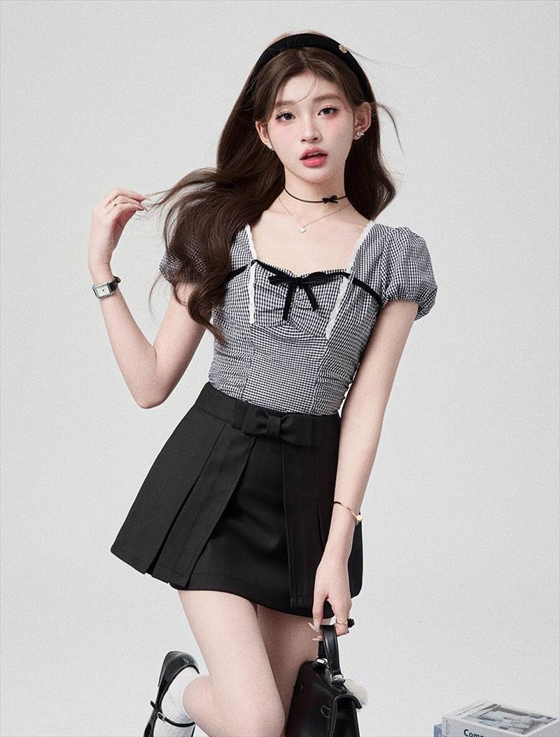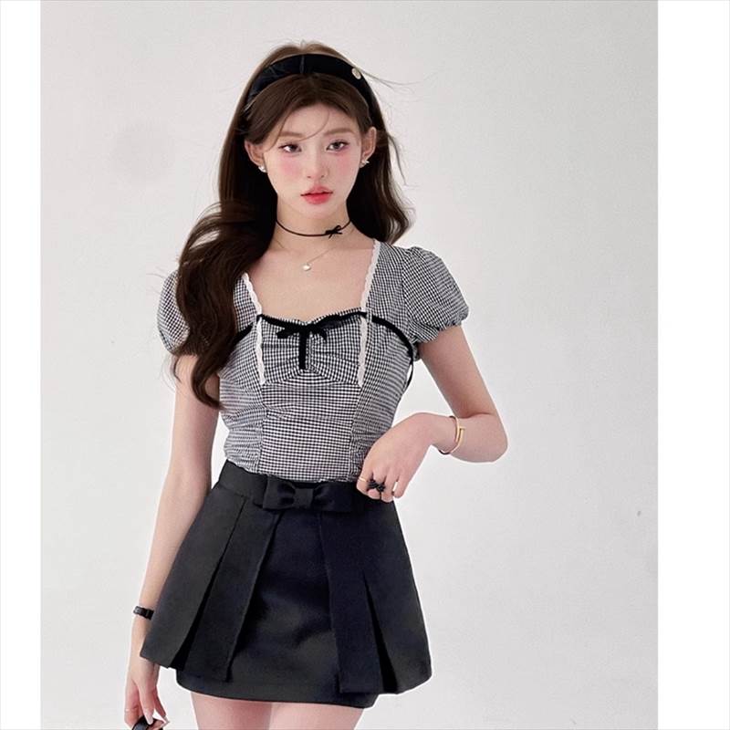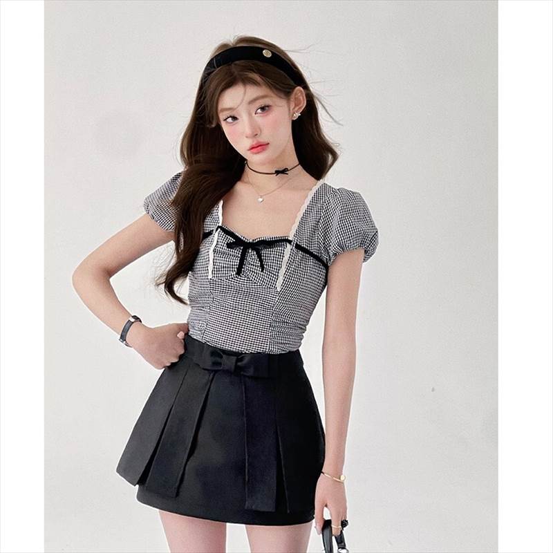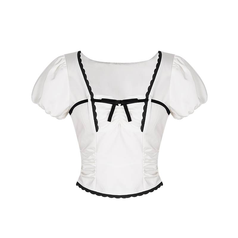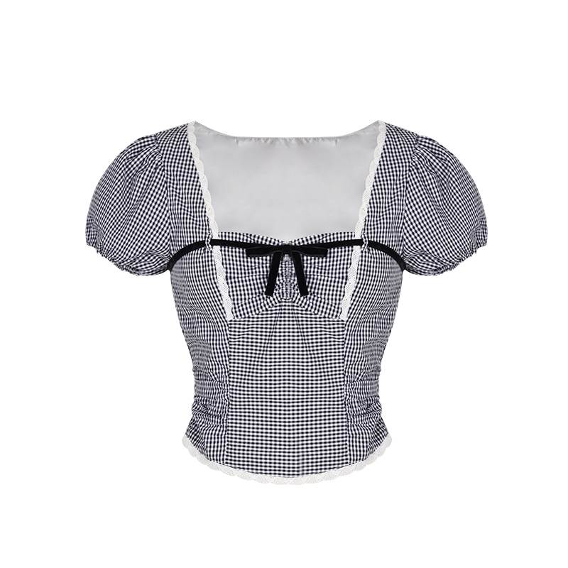 胸元リボン クロップドブラウス レディース トップス ブラウス スリム 細身 ショート 半袖 ボリューム袖 パフスリーブ スクエアネック 襟なし 鎖骨見せ デコルテ見せ ギャザー 配色 スカラップレース かわいい 大人可愛い きれいめ シンプル カジュアル 上品 おしゃれ ガーリー 抜け感 ラブリー キュート フェミニン 無地 格子柄 ギンガムチェック 春 夏 女の子 デート お出かけ 休日 合コン コンパ カフェ 脚長 普段使い モテ XS S M L 小さいサイズ ホワイト ブラック モノトーン