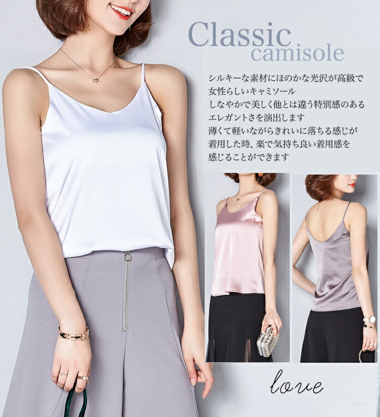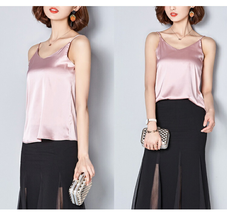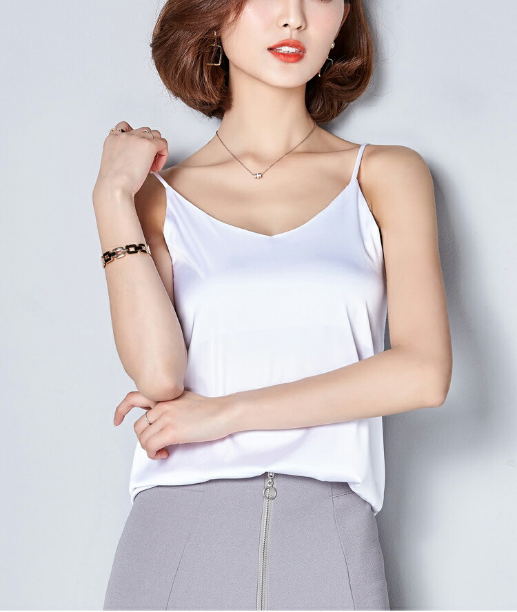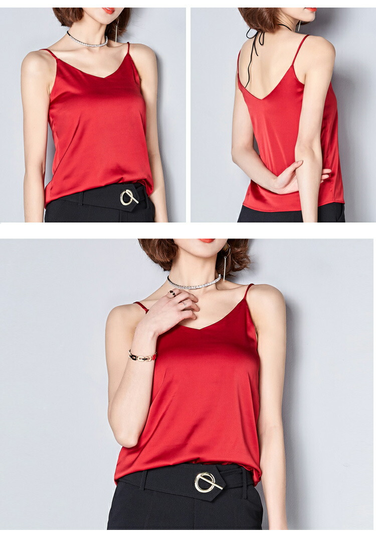 キャミソール サテン Vネック レディ トップス キャミソール 人気 ブラック ホワイト レッド ピンク ダークグリーン パウダーブルー グレージュ S M L 2L 3L