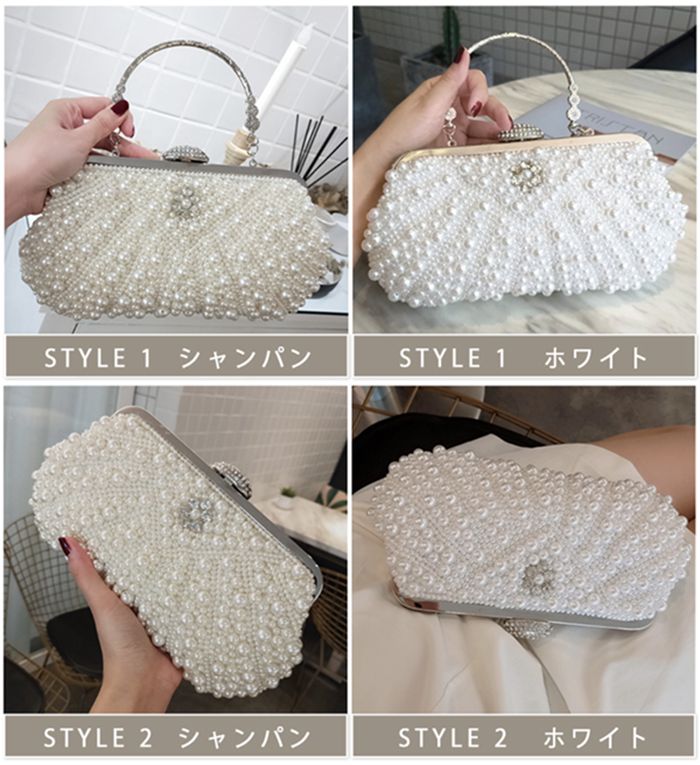 ゴージャス&贅沢パール使いの2タイプ選 バッグ 小物 ブランド雑貨 豊富 STYLE1 シャンパン STYLE1 ホワイト STYLE2 シャンパン STYLE2 ホワイト