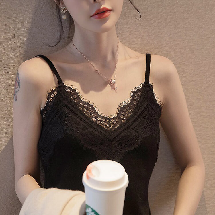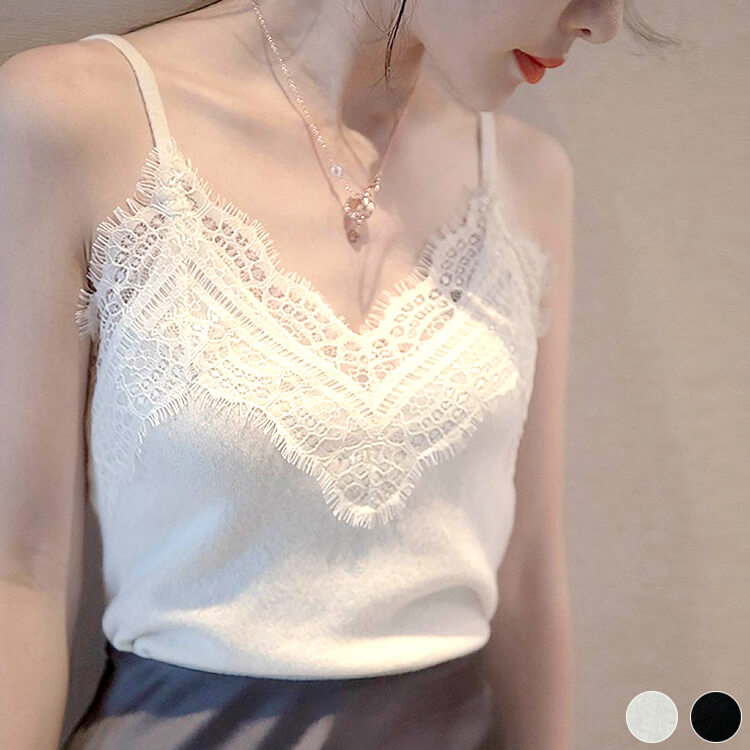 キャミソール レース レディース Vネ レディースファッション 通販 ホワイト ブラック