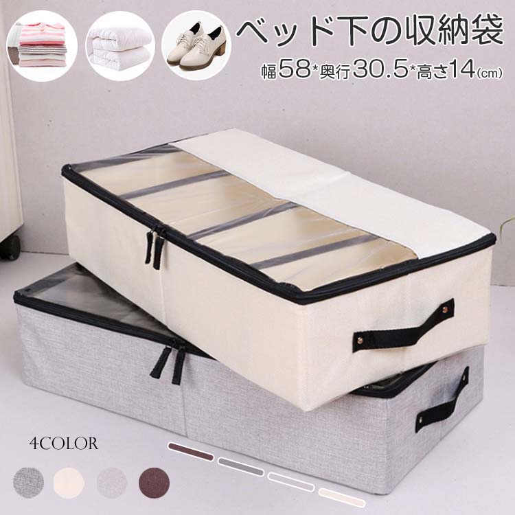 収納袋 幅58*奥行30.5*高さ14 ダークグレー ベージュ ライトグレー コーヒー色