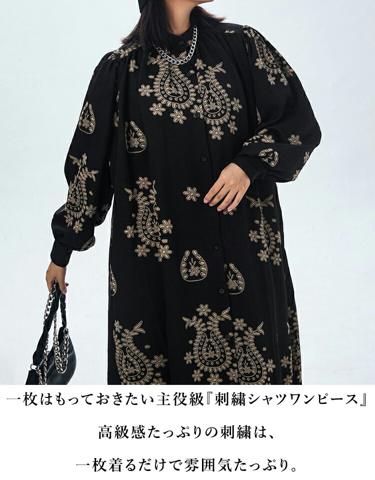 刺繍シャツワンピース ワンピース レデ
