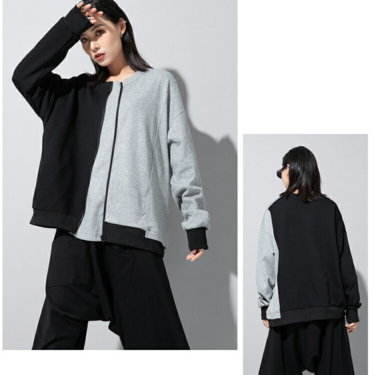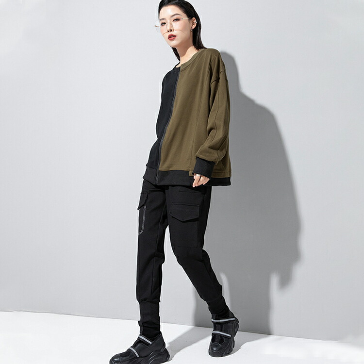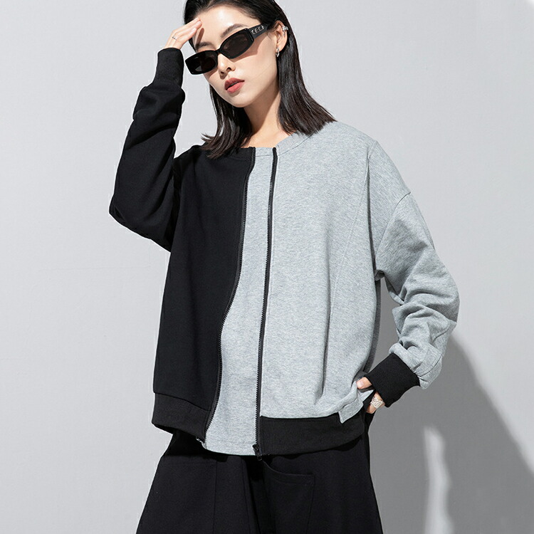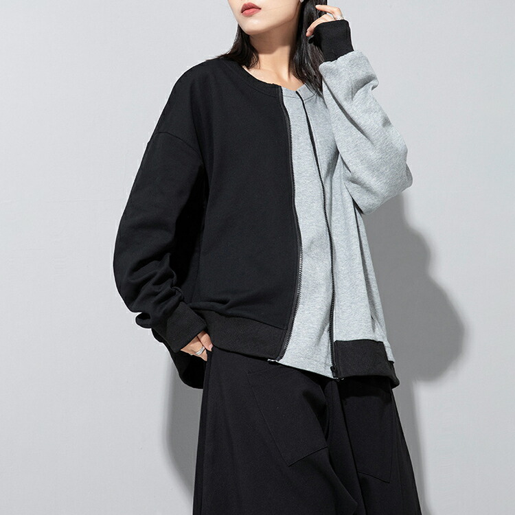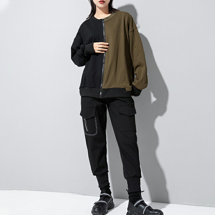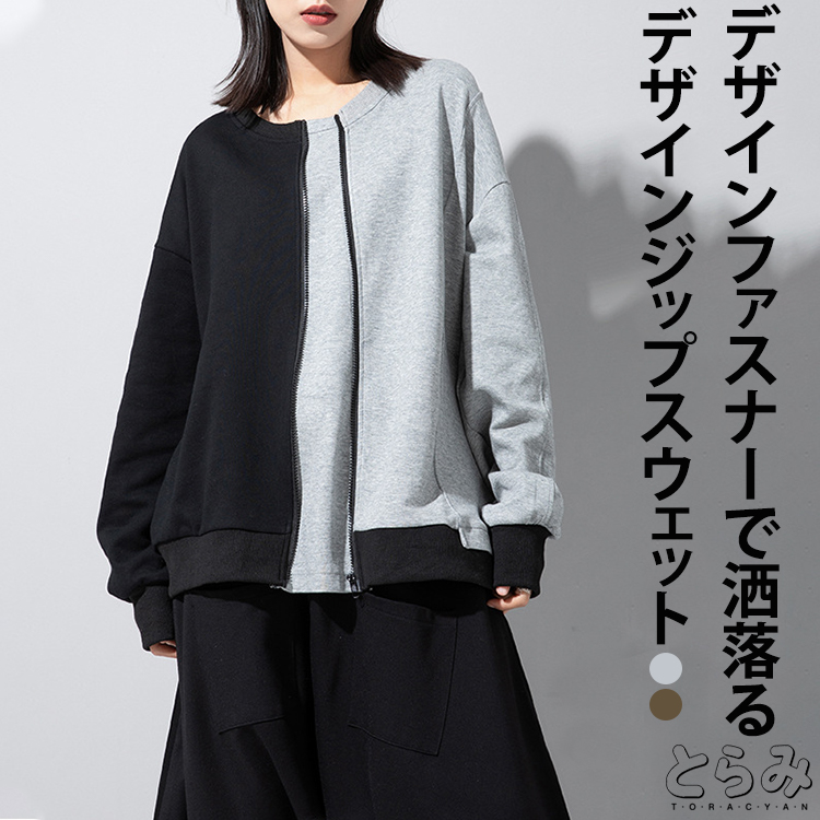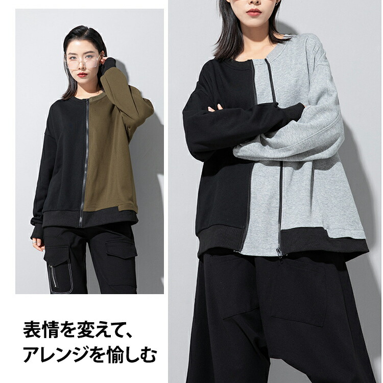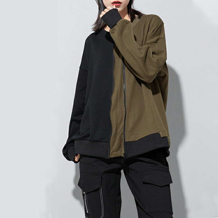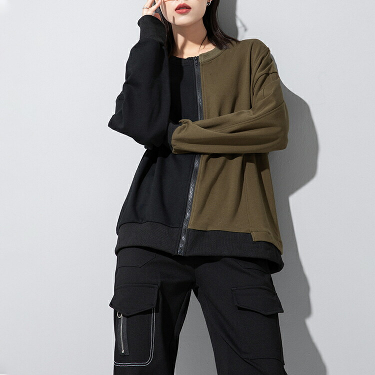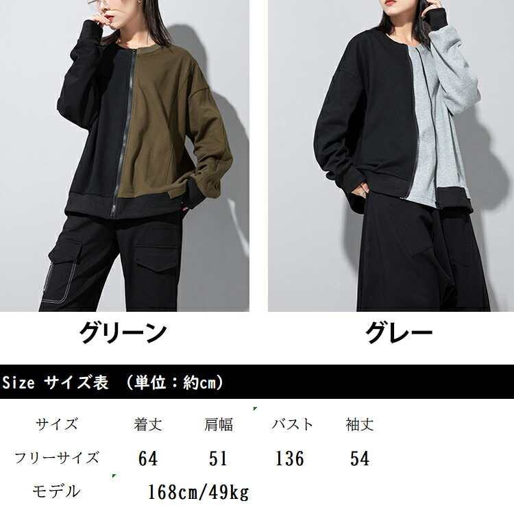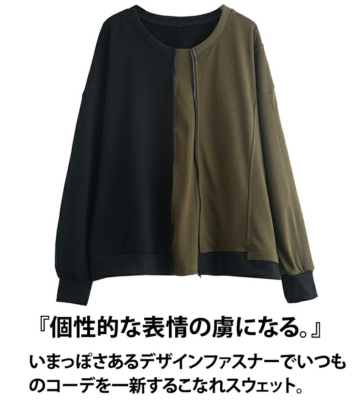 ジップデザイントップス スウェット レ トップス スウェット トレーナー 人気 グレー グリーン