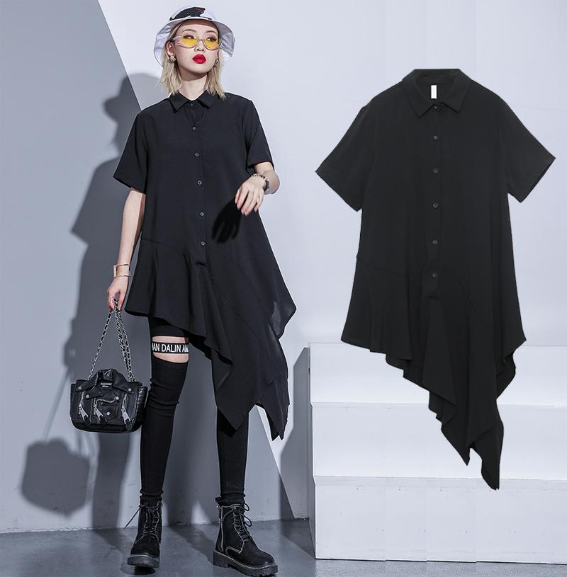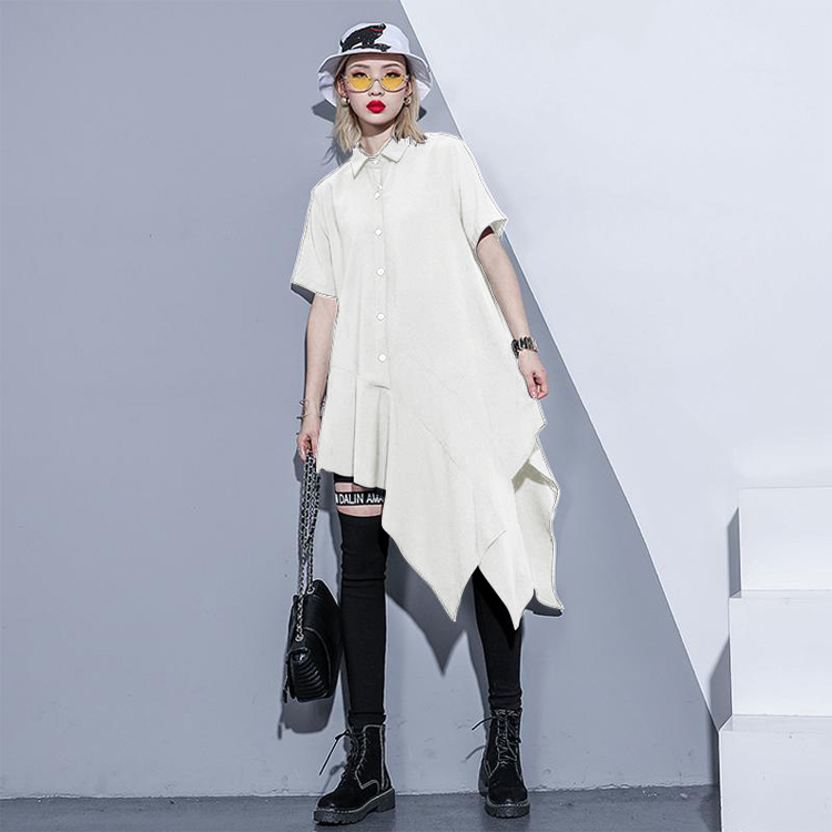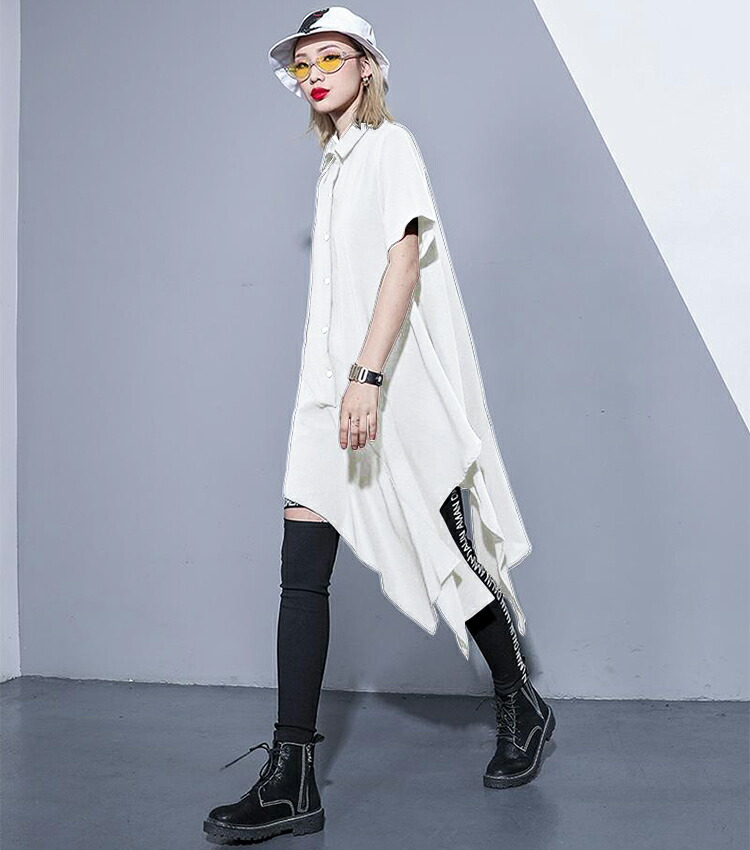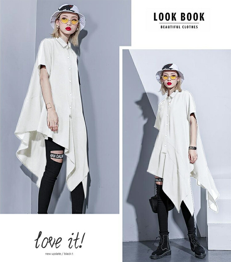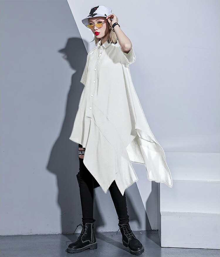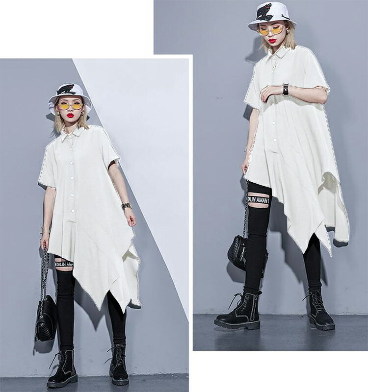 アシンメトリーワンピース ロングシャツ レディースファッション 超目玉商品 ブラック ホワイト