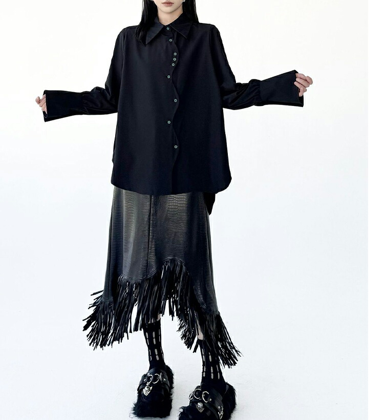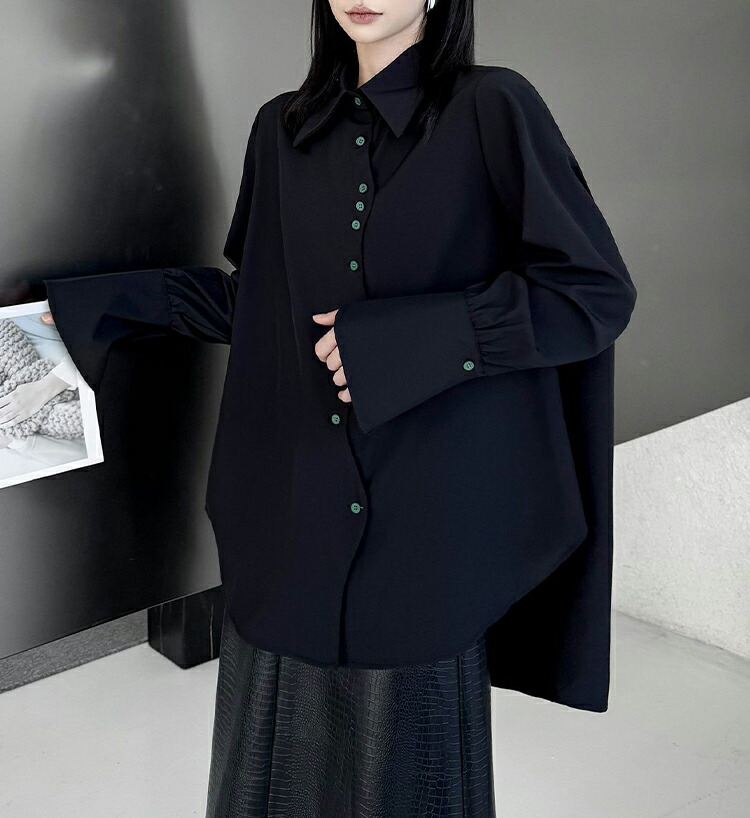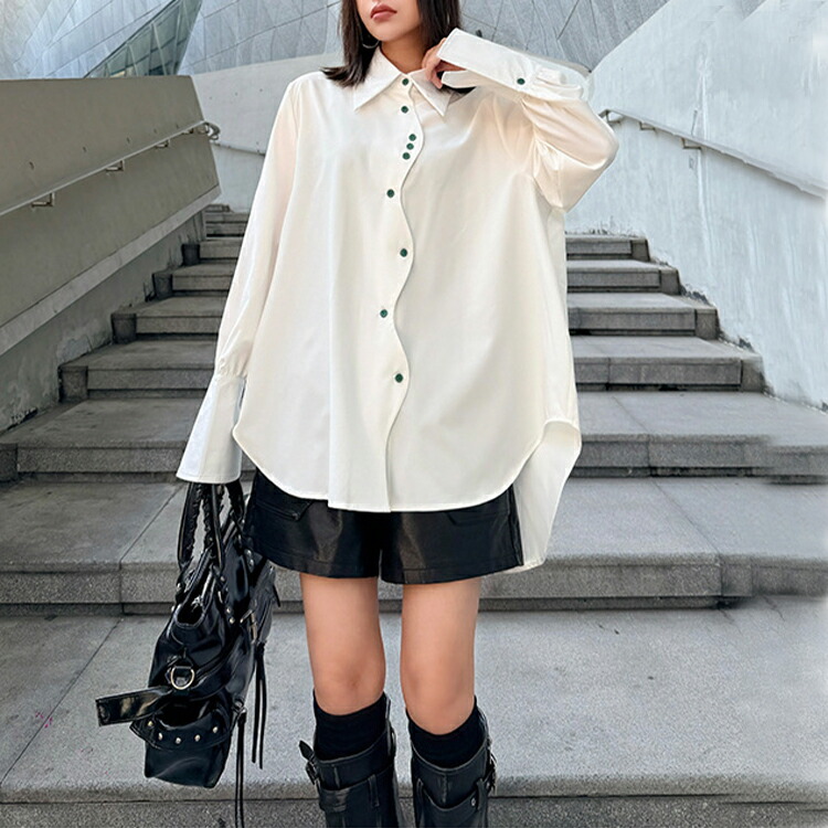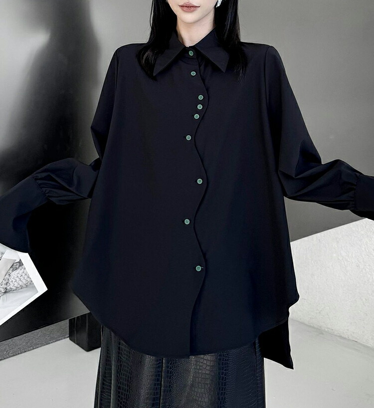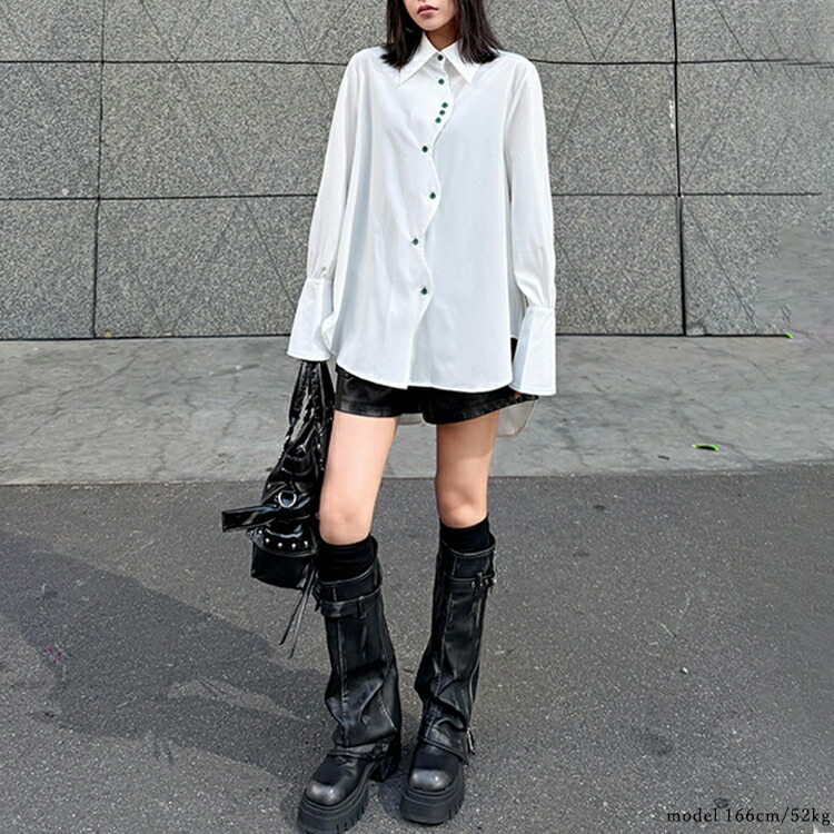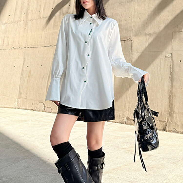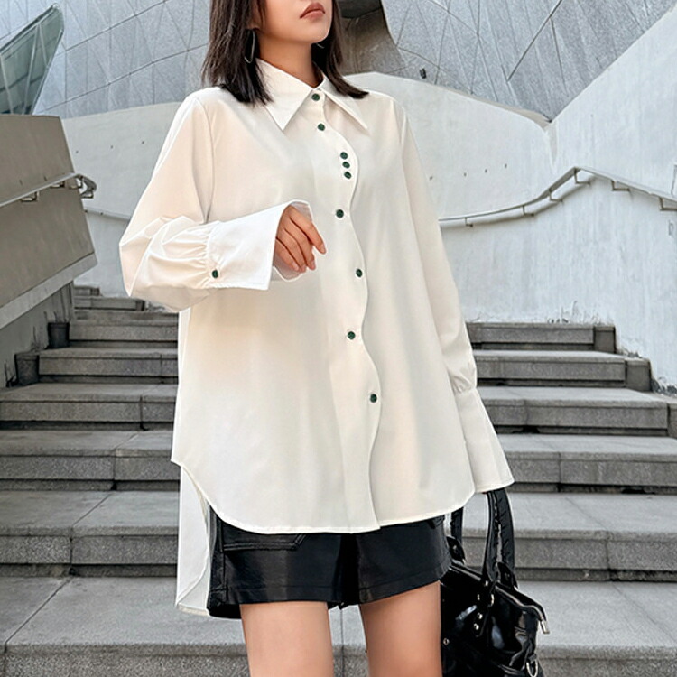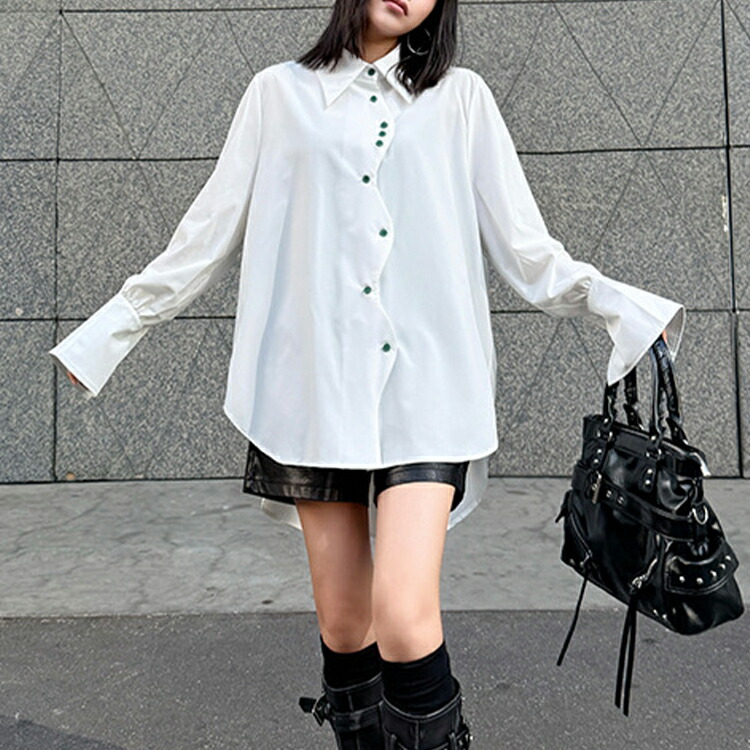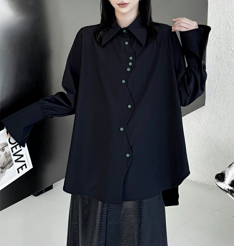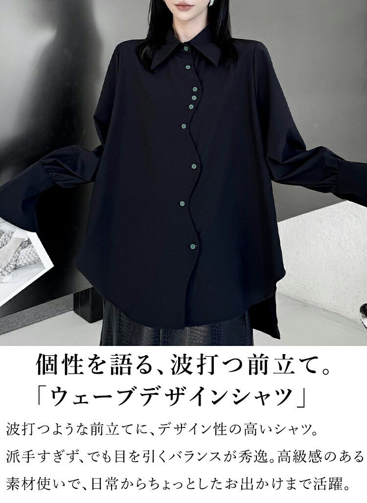 アシンメトリーシャツ シャツ レディー レディースファッション 続々登場 ブラック ホワイト