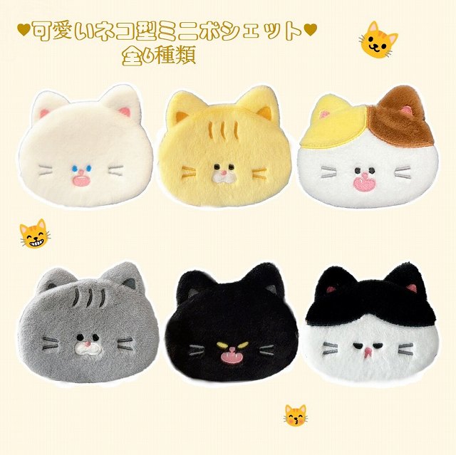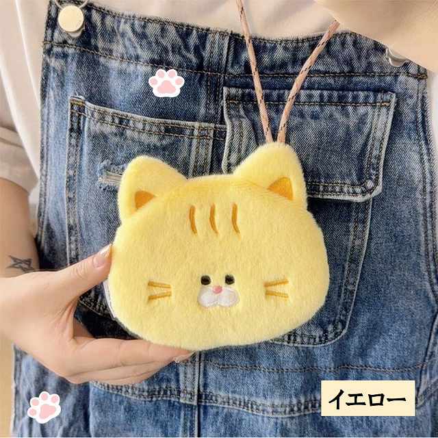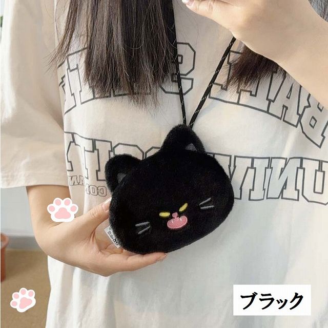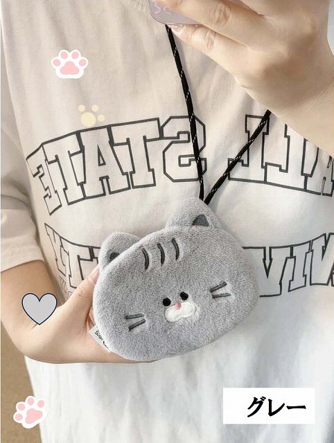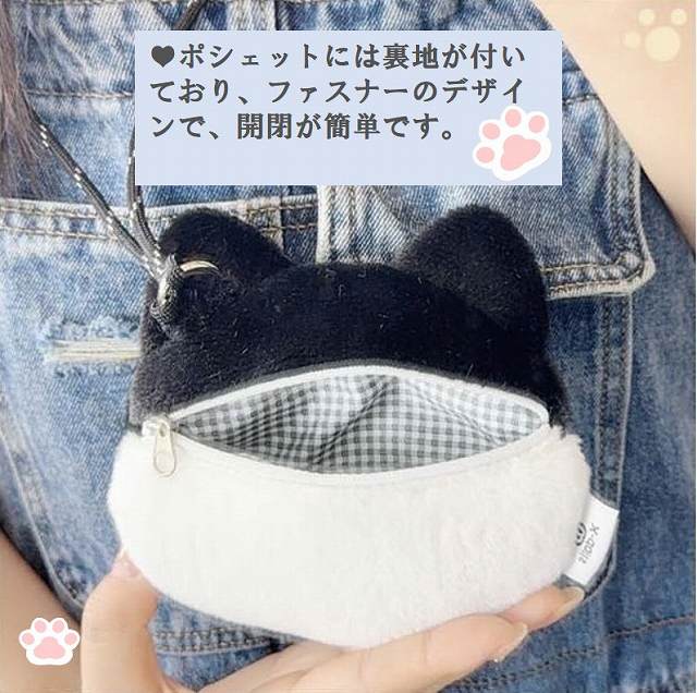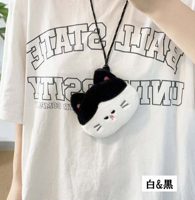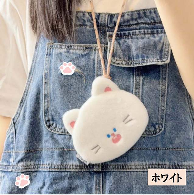 ミニポシェット首かけネコ小銭入れネコポ キッズ ベビー マタニティ 人気 みけねこ 白&黒 グレー ブラック イエロー ホワイト