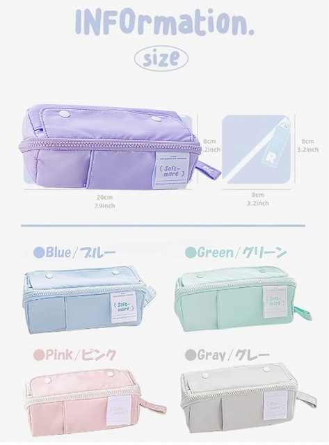ペンケース筆箱 筆入れ 文具用品収納 日用品雑貨 文房具 手芸 人気 ピンク ブルー グレー グリーン パープル