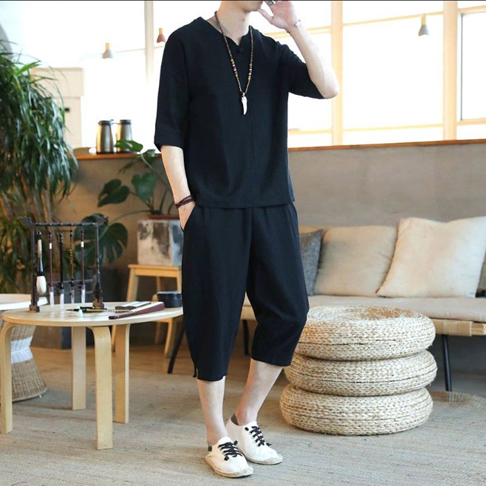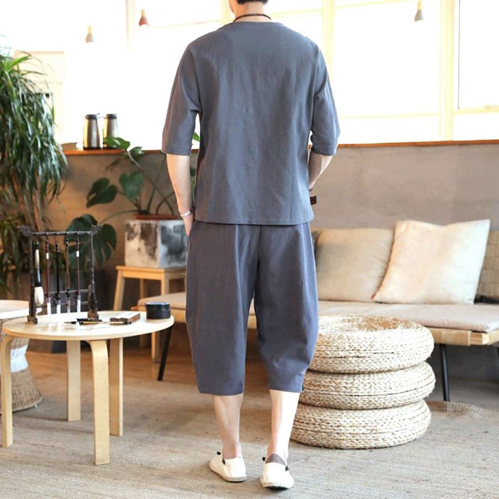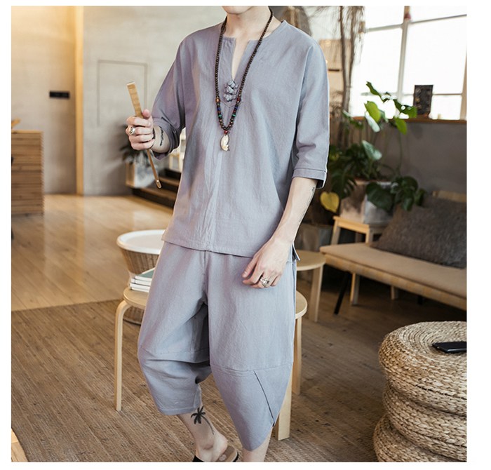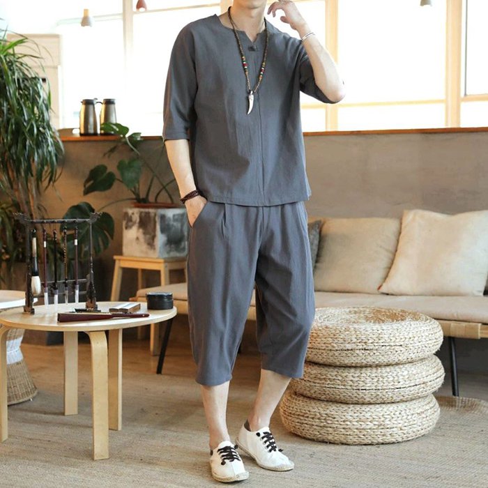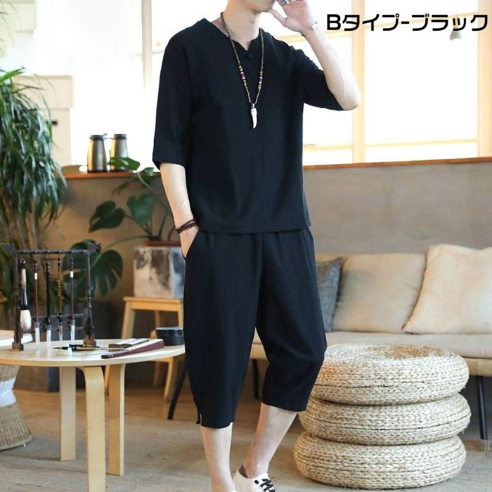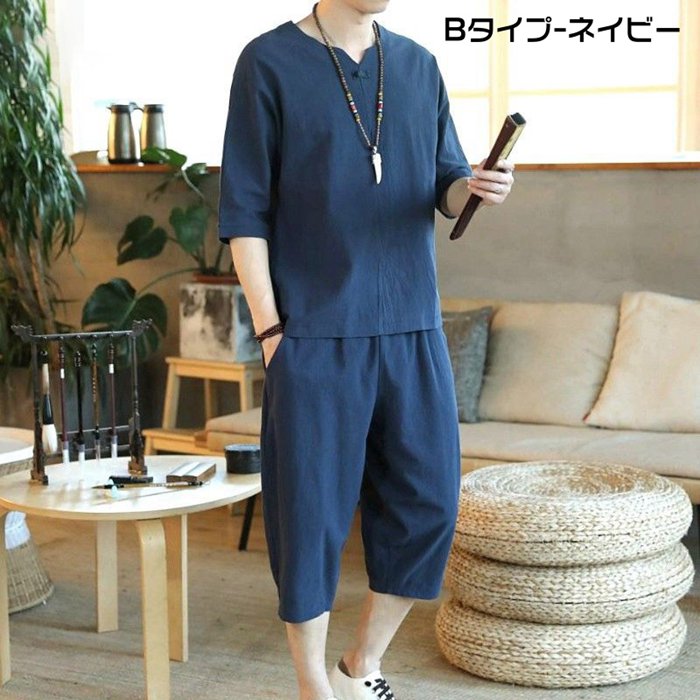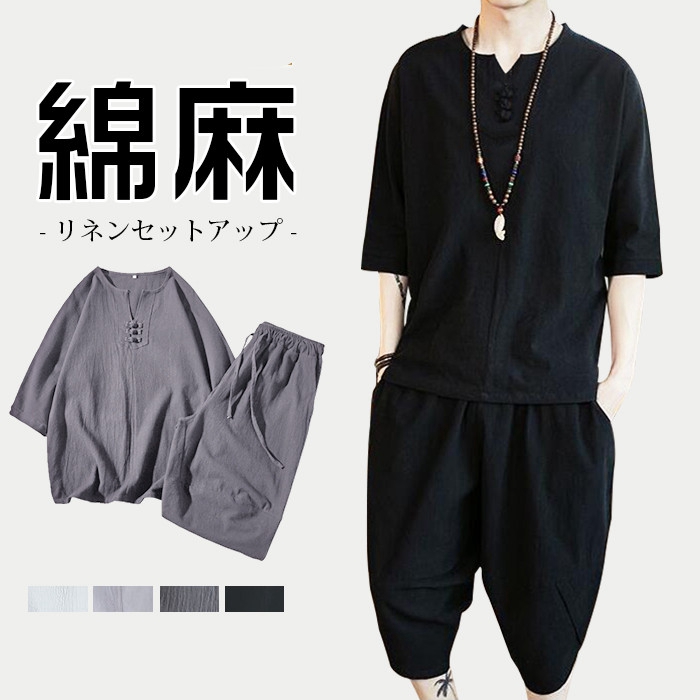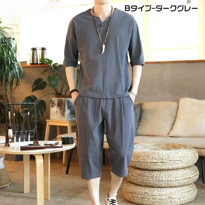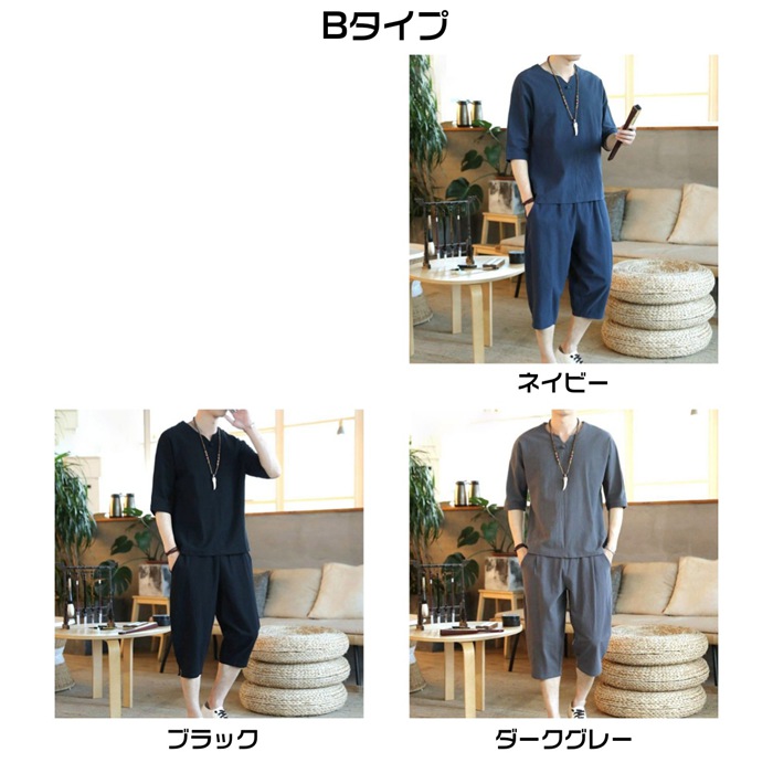綿麻上下セット セットアップ リネン メンズファッション 人気 Aタイプ-ダークグレー Aタイプ-ブラック Aタイプ-ライトグレー Bタイプ-ダークグレー Bタイプ-ネイビー Bタイプ-ブラック L XL 2XL 3XL 4XL 5XL
