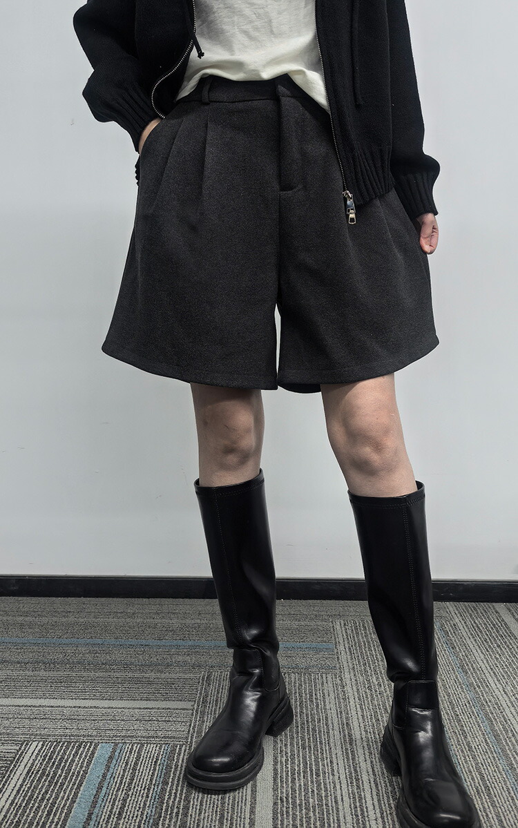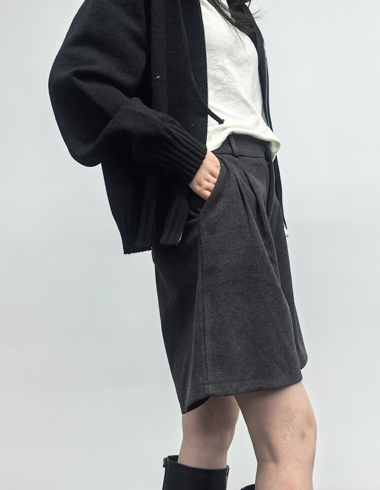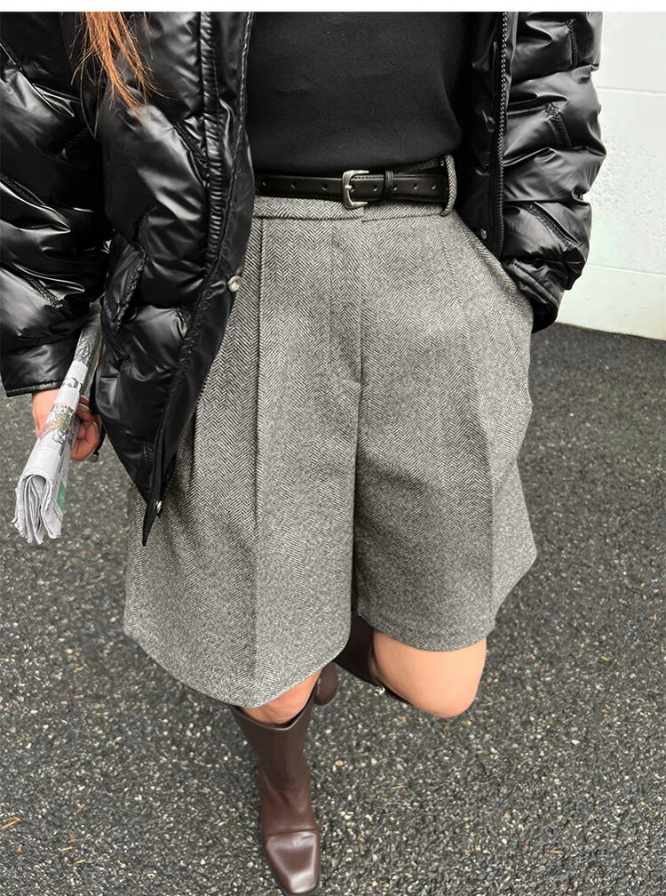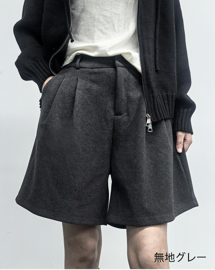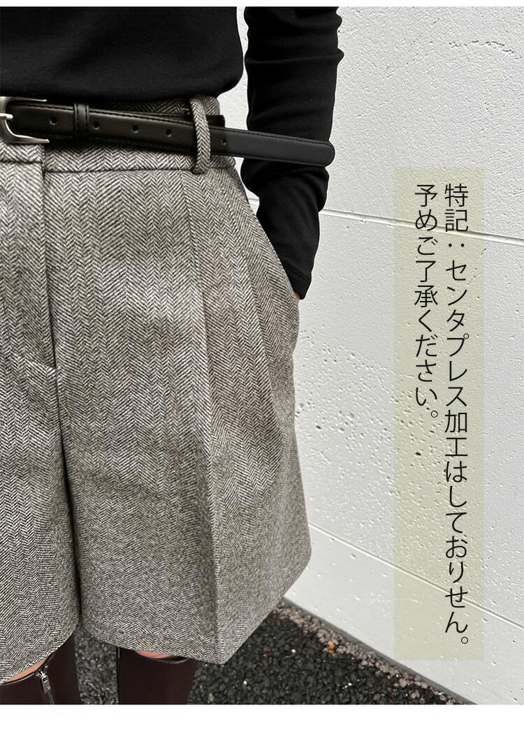 ウール調 ショートパンツ 秋冬 レディ ボトムス キュロットスカート 早い者勝ち 人字柄グレー 無地ブラック 無地グレー S M L XL