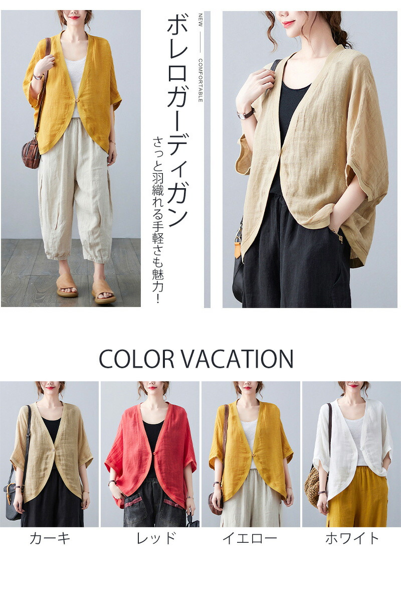カーディガン 薄手 羽織 レディース トップス カーディガン ボレロ 早い者勝ち ホワイト レッド カーキ イエロー M L XL 2XL