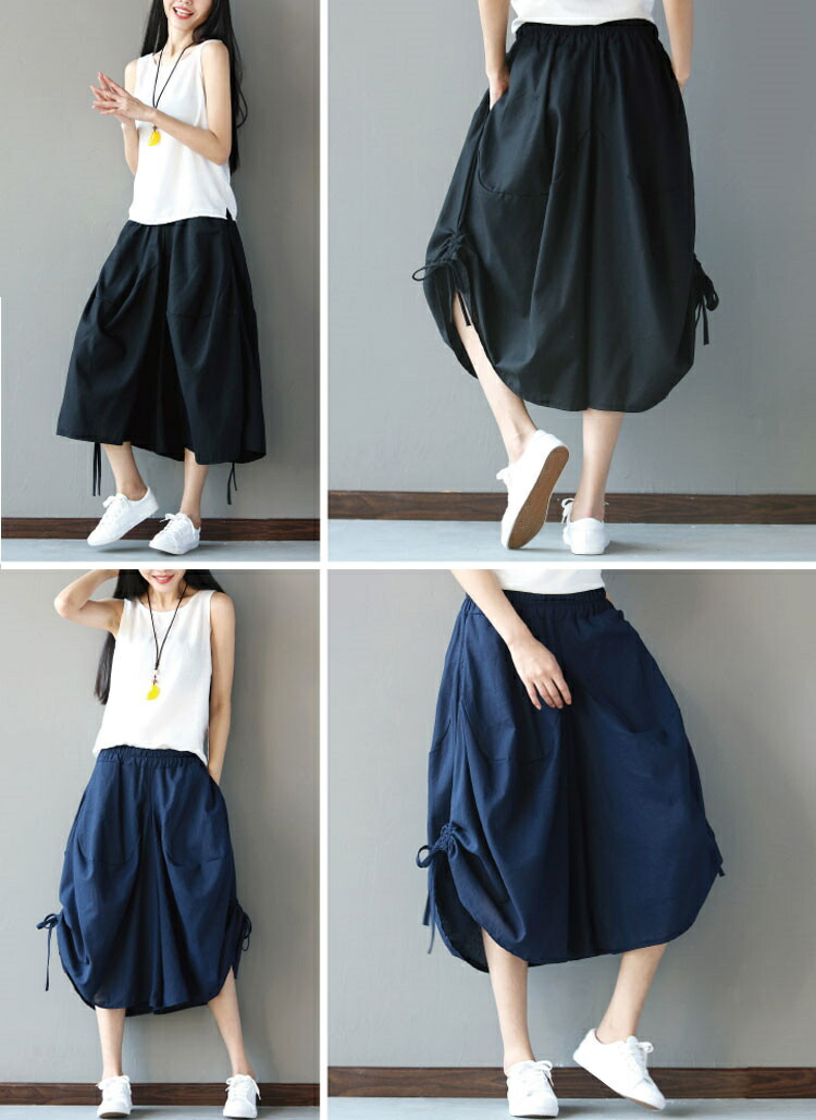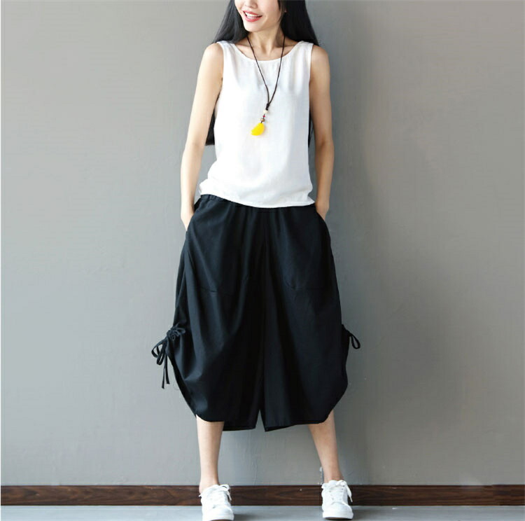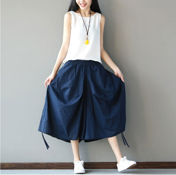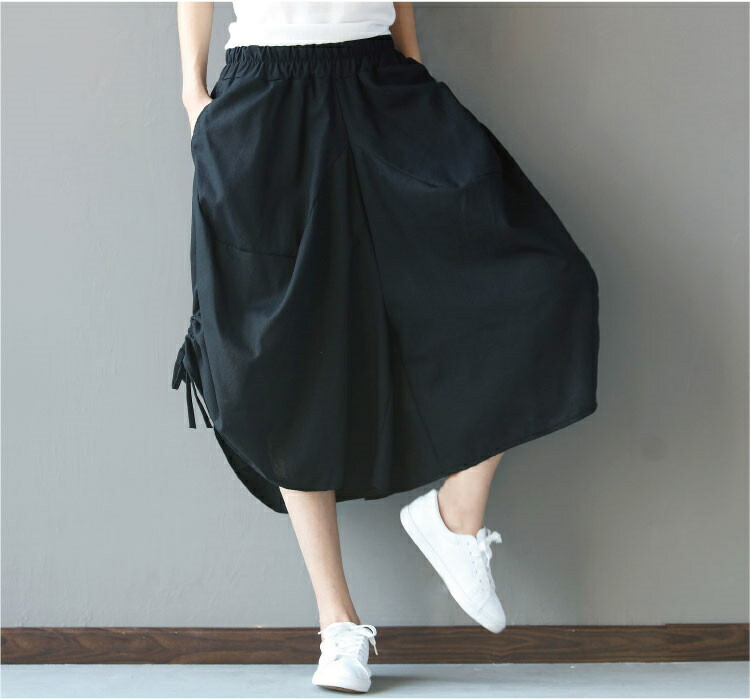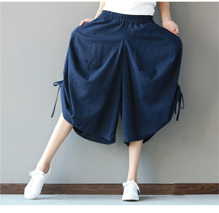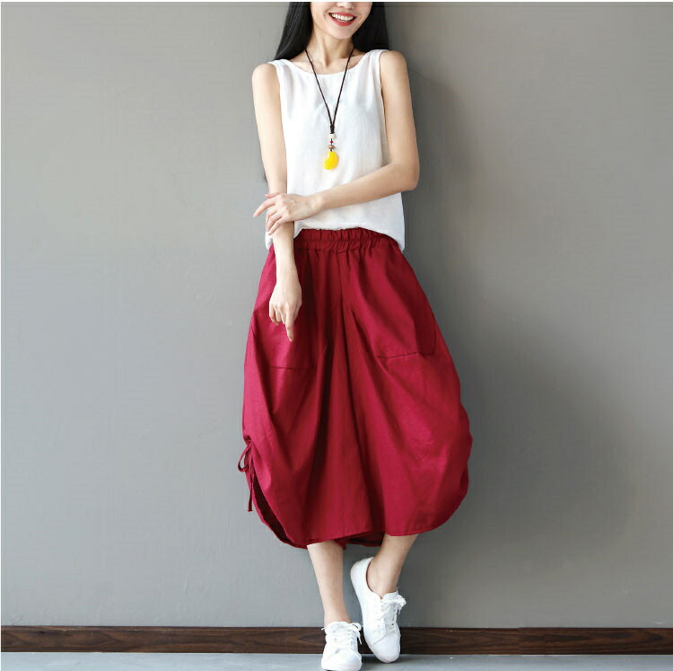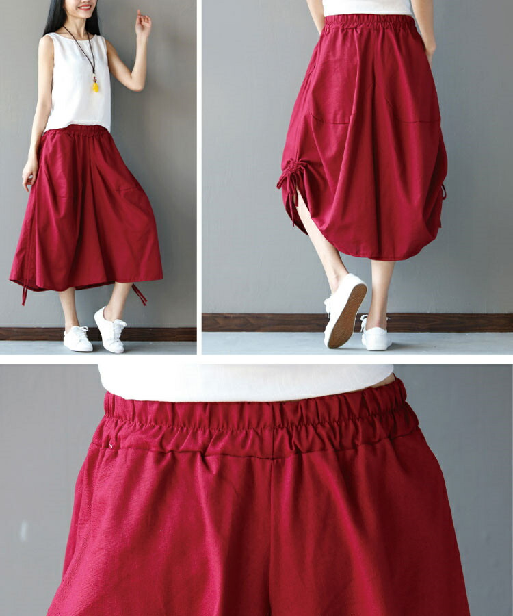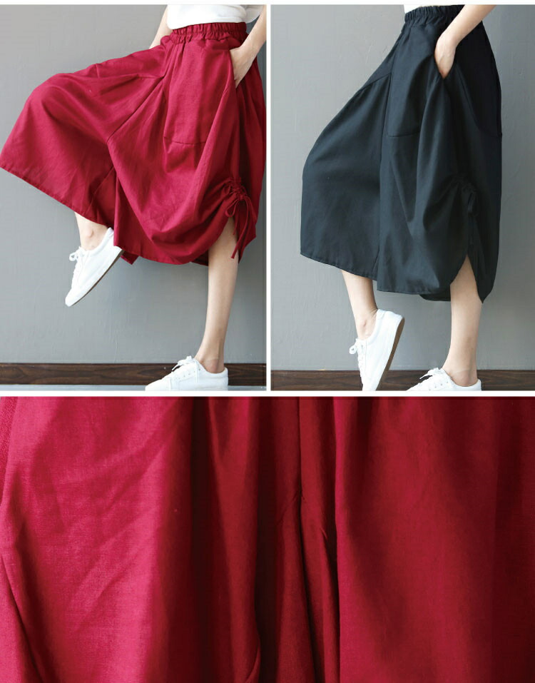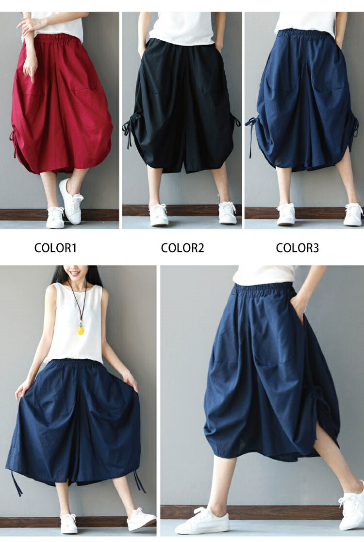 リネン 美脚 ガウチョ パンツ きれい ボトムス キュロットスカート 続々入荷中 COLOR1ブラック COLOR2レッド COLOR3ネイビ
