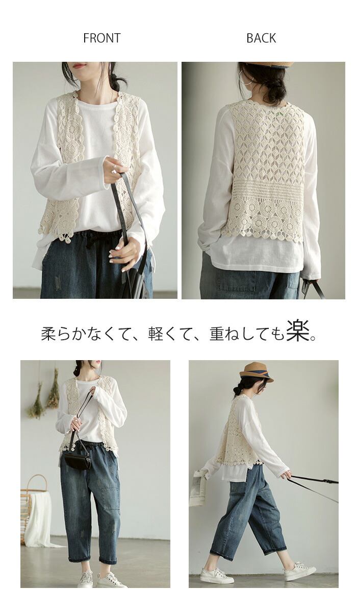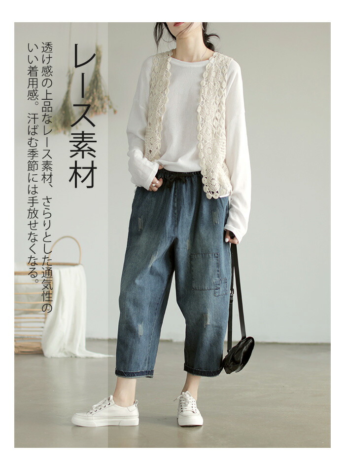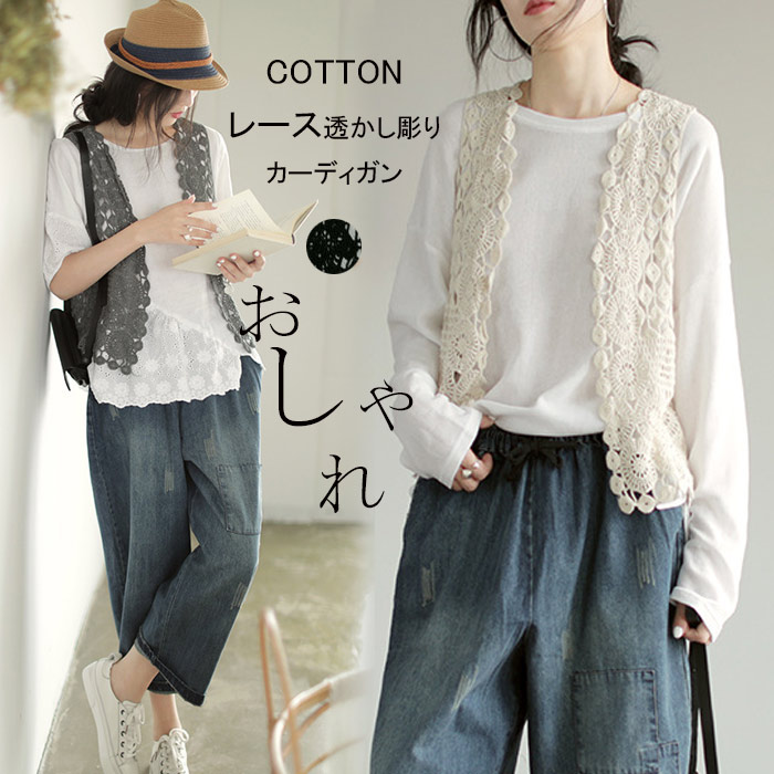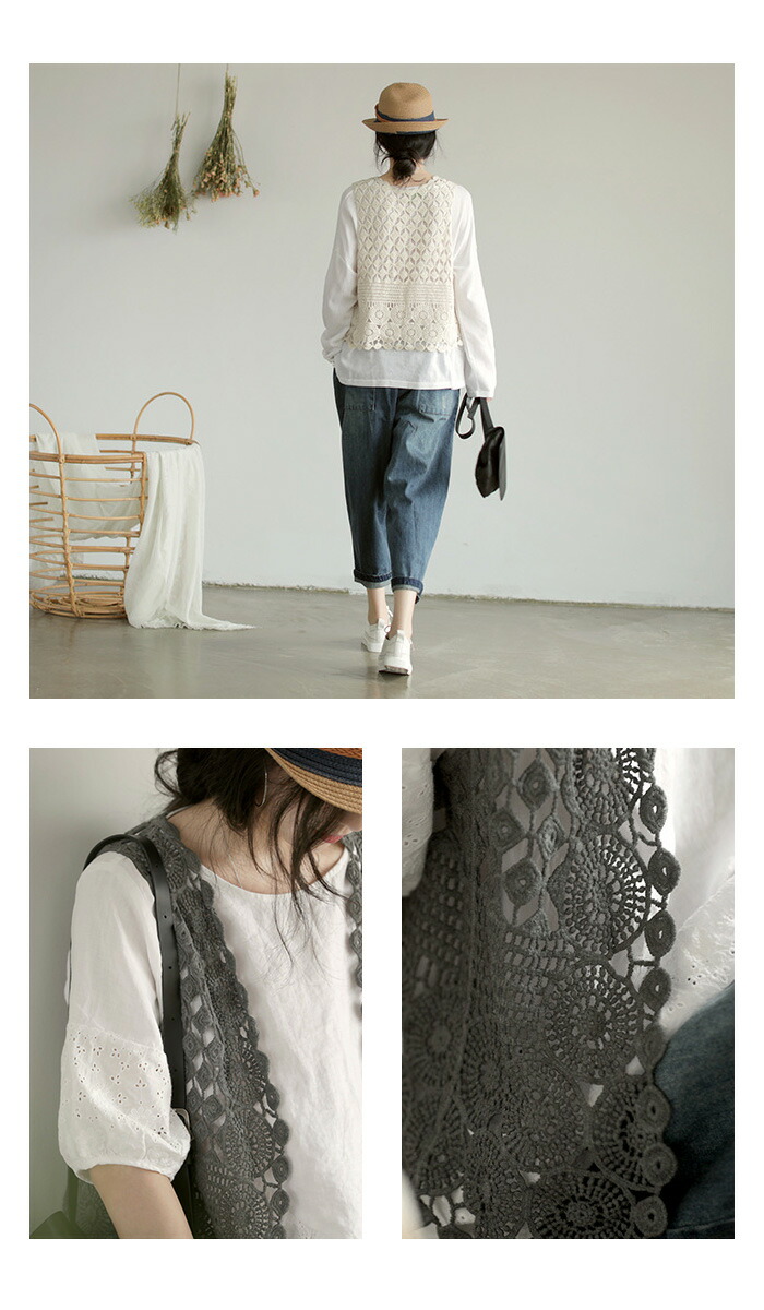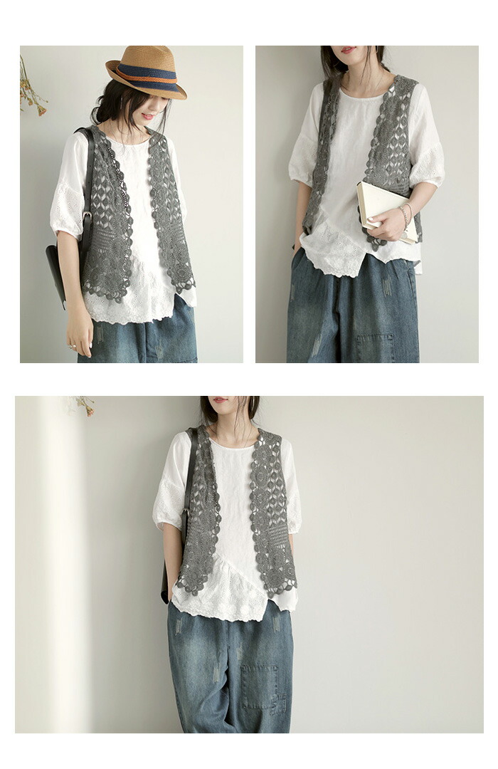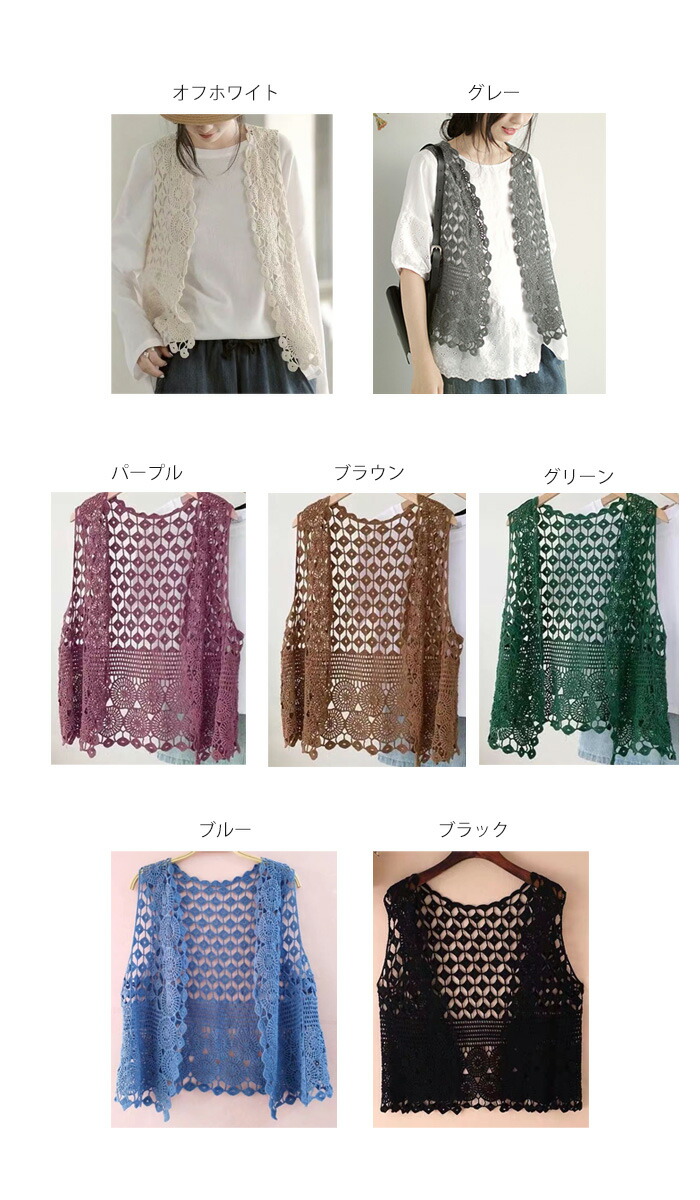 レース ベスト レディース ジレ 前開 トップス ベスト 早い者勝ち オフホワイト グレー ブラック パープル ブラウン グリーン ブルー