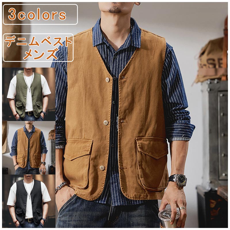 デニムベスト メンズ デニム Vネック トップス ベスト ジレ 早い者勝ち color1 color2 color3 M L XL 2XL 3XL 4XL