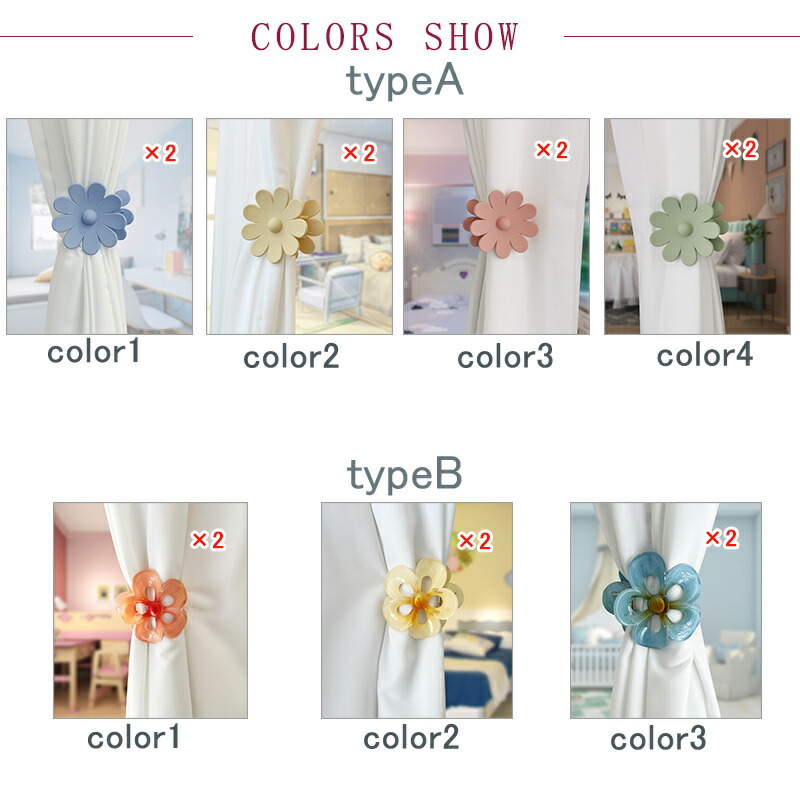 2本セット カーテン タッセル クリッ typeAcolor1 typeAcolor2 typeAcolor3 typeAcolor4 typeBcolor1 typeBcolor2 typeBcolor3