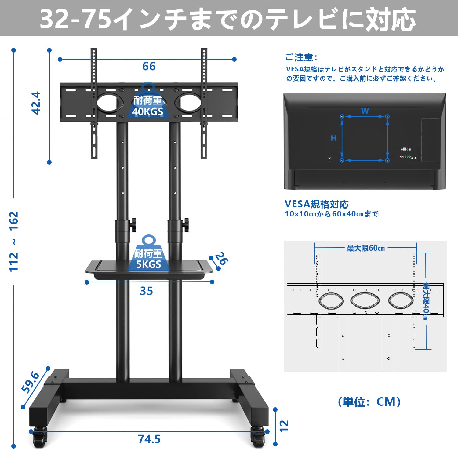 テレビスタンドキャスター付き tvスタ