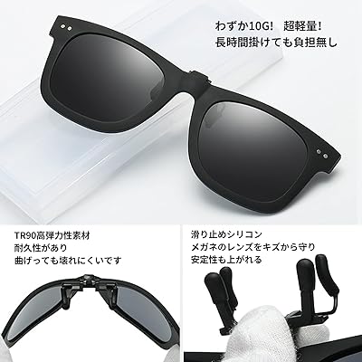 クリップオン サングラス 眼鏡の上から メガネにつける 前掛け 跳ね上げ式 偏光 UVカット 超軽量 固定タイプ メンズ レディース スポーツ ドライブ 野球 釣り ランニング 運転用 自転車