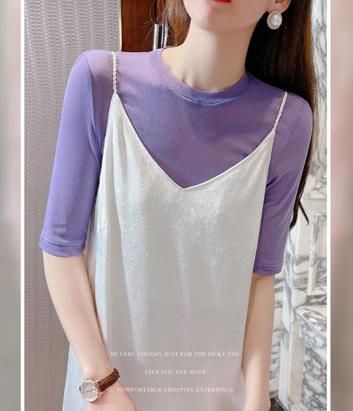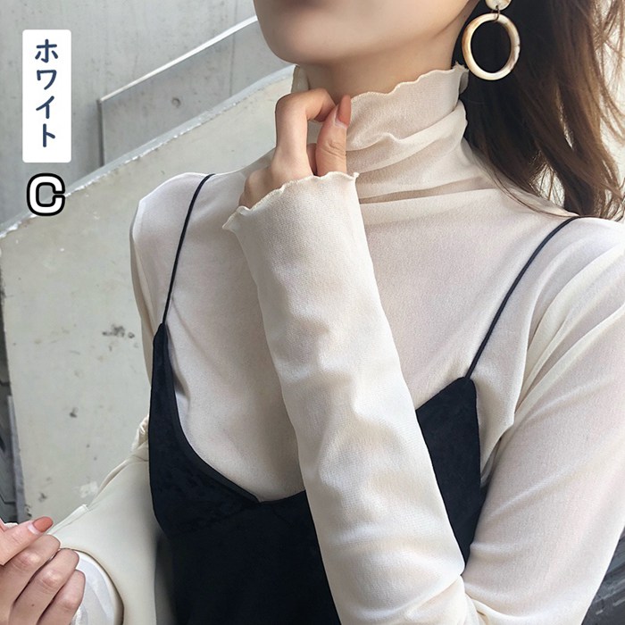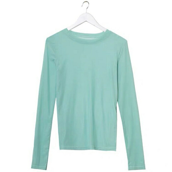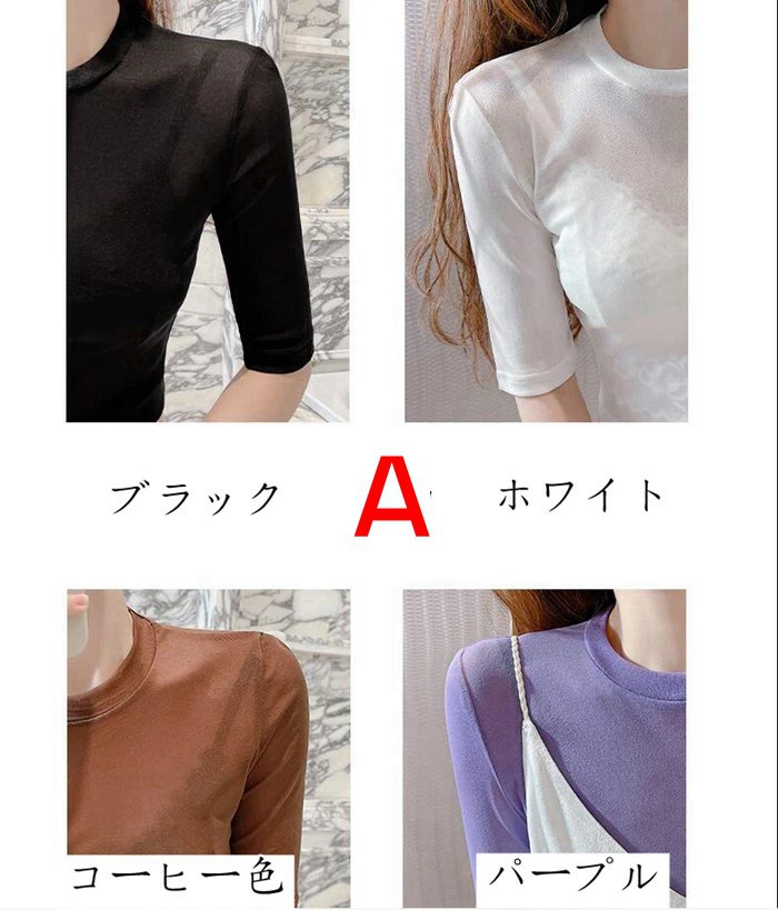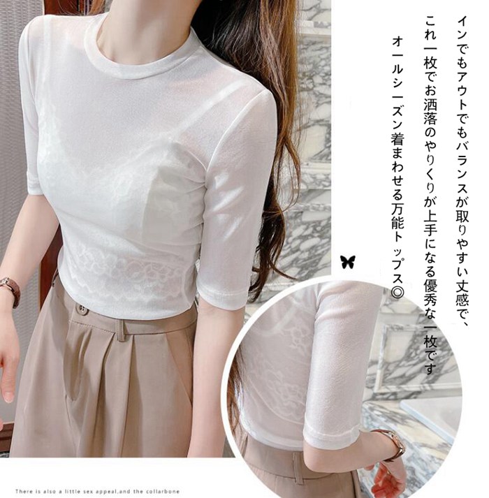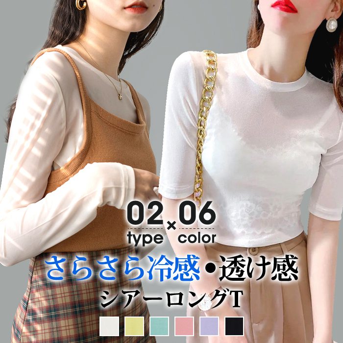 シアートップス クルーネック tシャツ 長袖 五分袖 重ね着 シアー レイヤード インナー 白 無地 シースルー トップス UVケア 透け感 ホワイト ブラック 新タイプ追 体型カバー