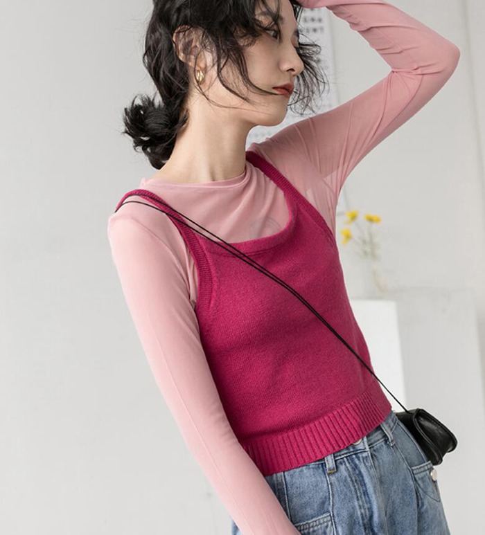 ニットベストやビスチェ、キャミワンピとレイヤードスタイルにも