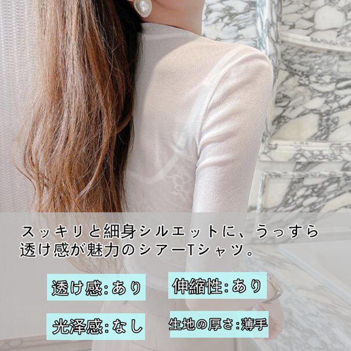 スッキリと細身シルエットに、うっすら透け感が魅力のシアーTシャツ。