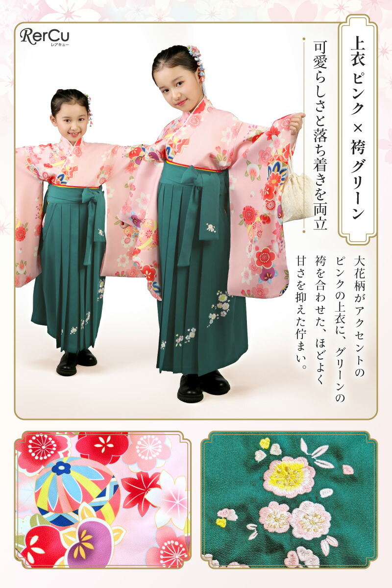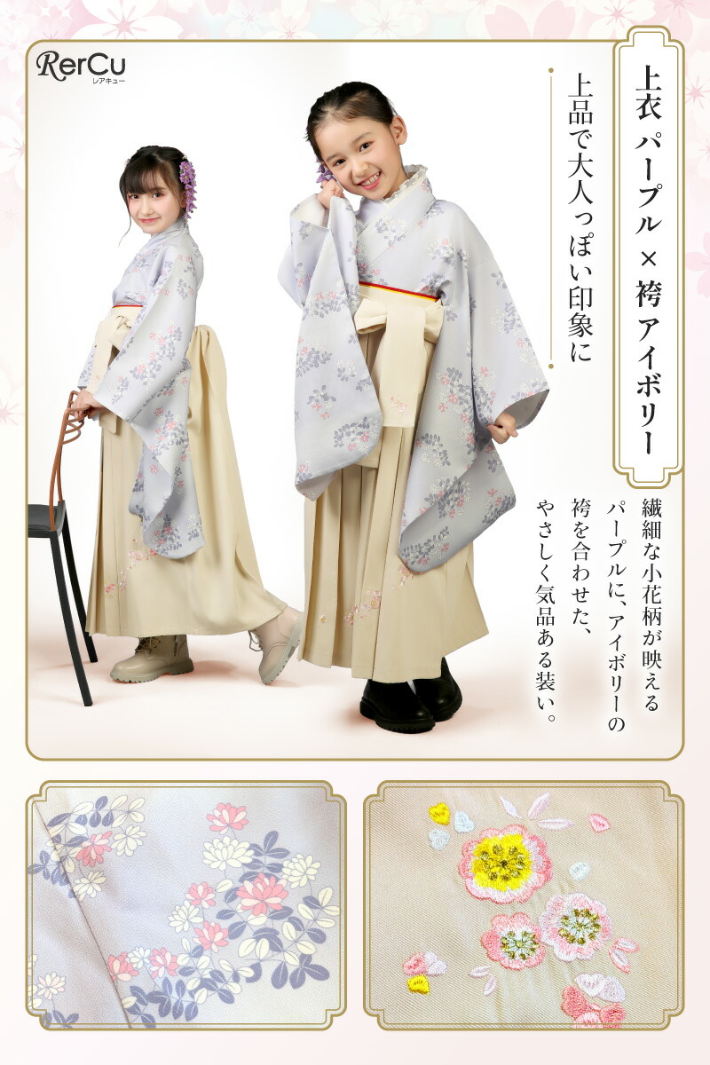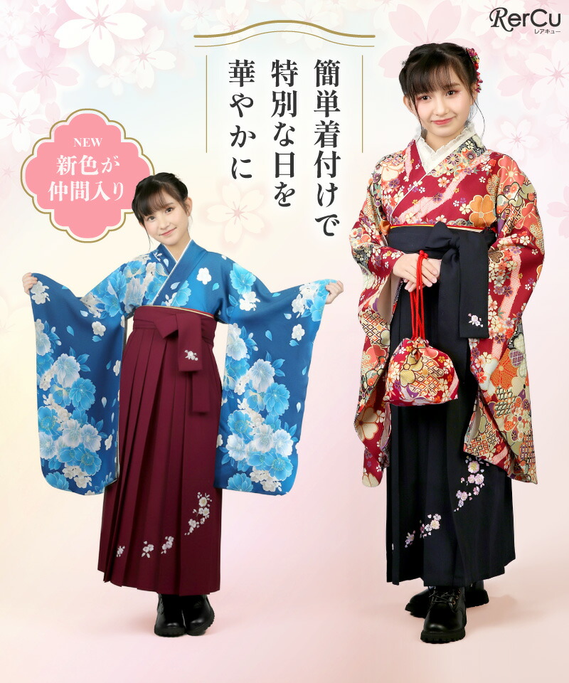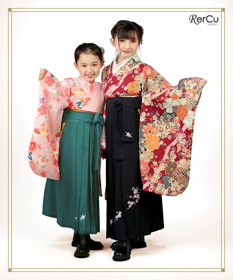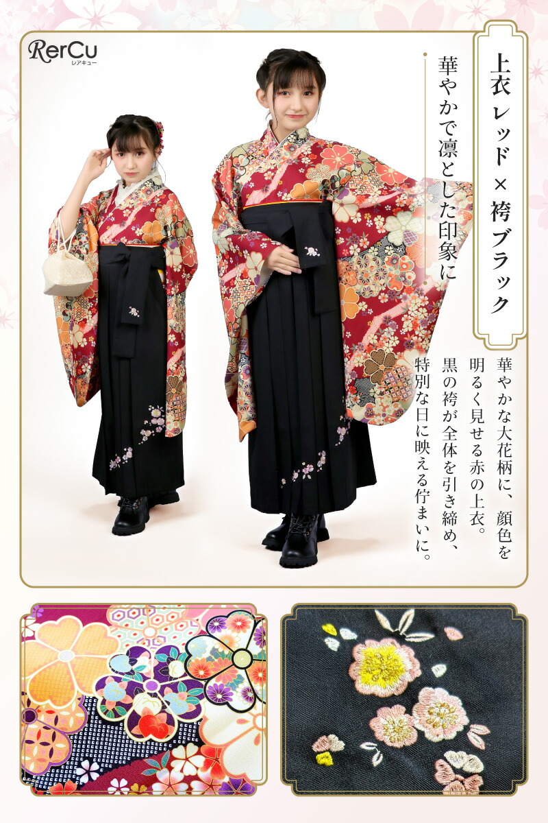 簡単袴セット 袴 卒業式 フルセット七 110 120 130 140 150 160 レッド×ブラック パープル×アイボリー ピンク×グリーン サックス×グリーン ブルー×ワインレッド