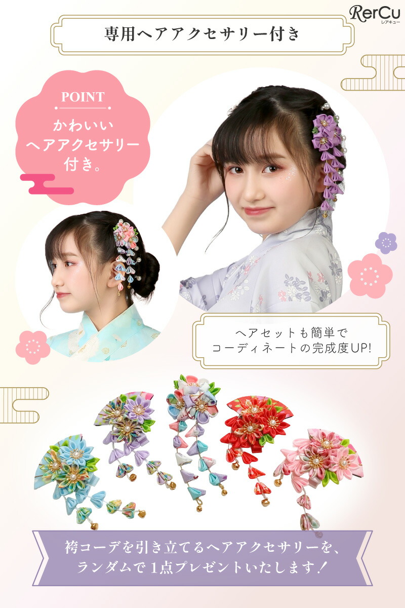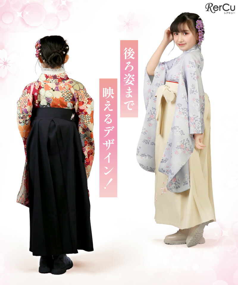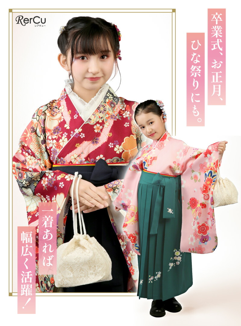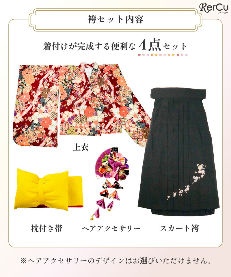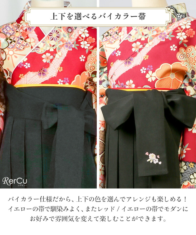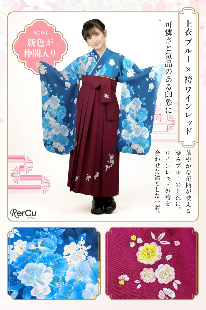 簡単袴セット 袴 卒業式 フルセット七 110 120 130 140 150 160 レッド×ブラック パープル×アイボリー ピンク×グリーン サックス×グリーン ブルー×ワインレッド