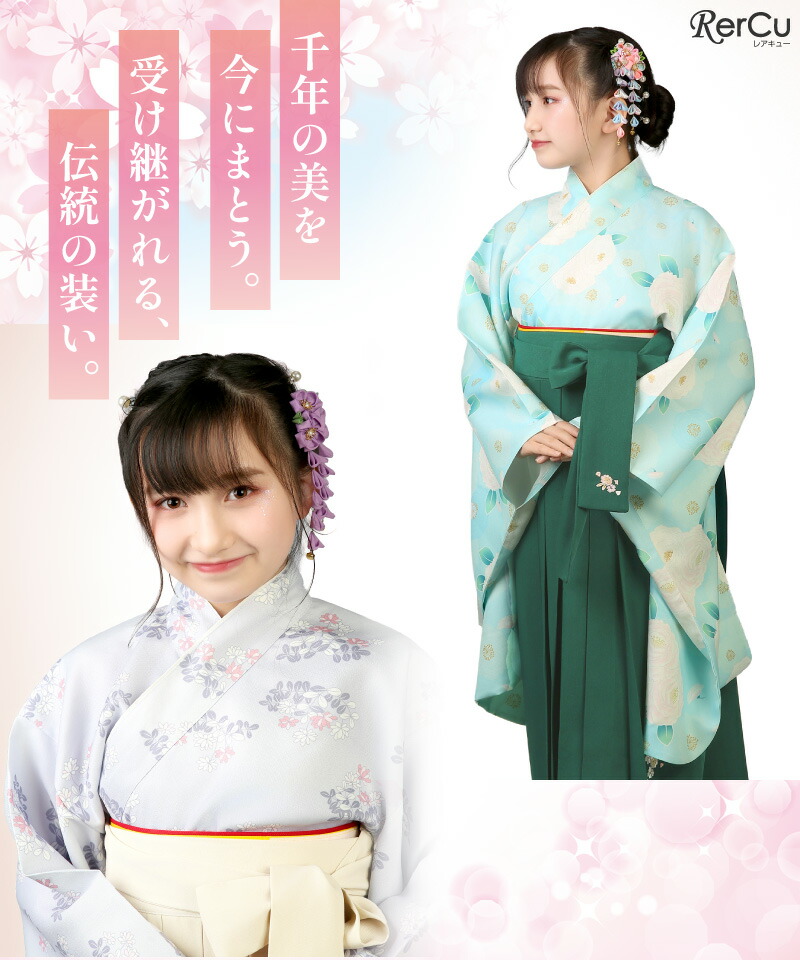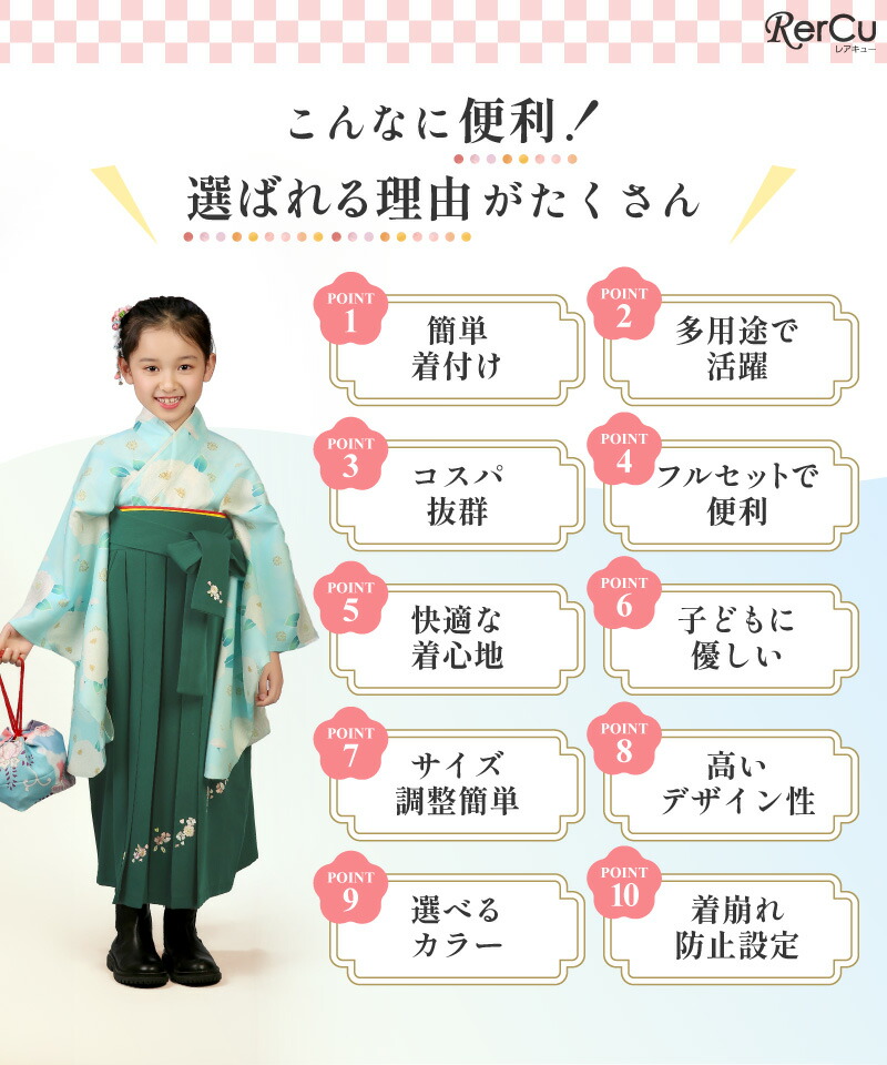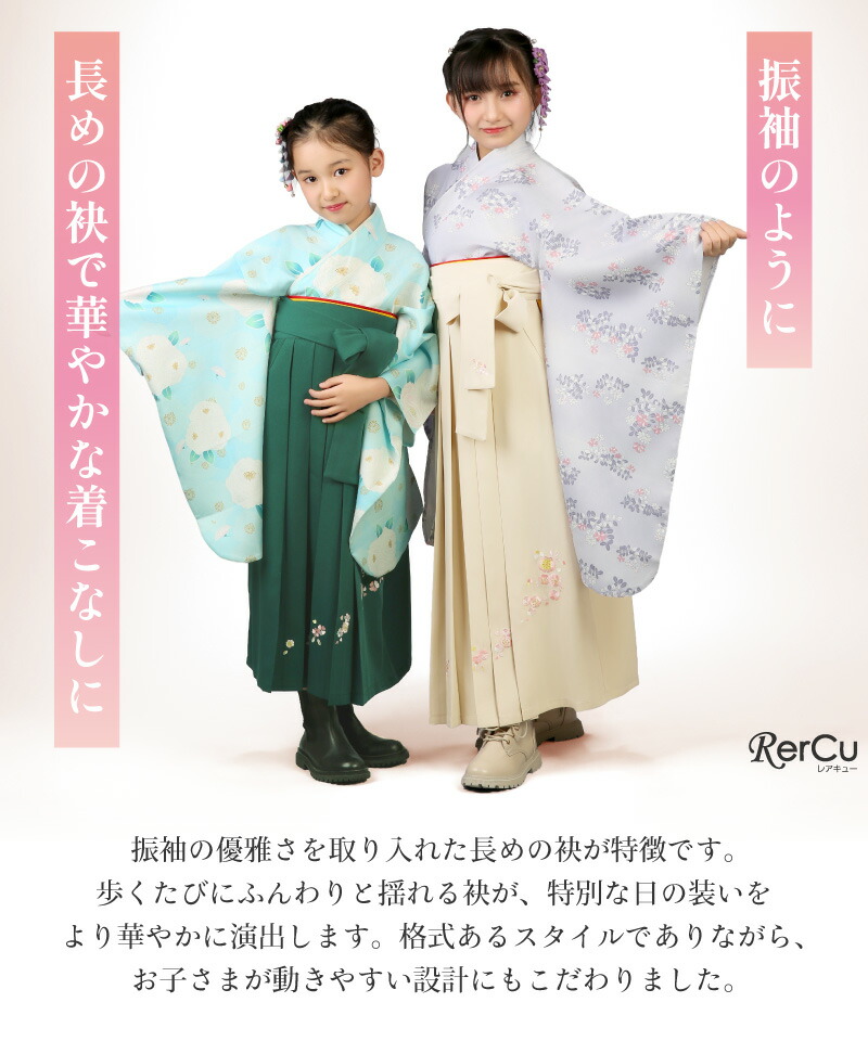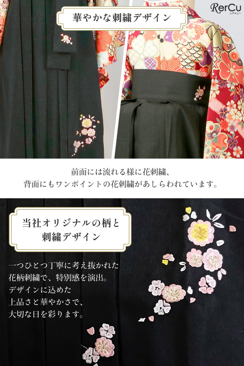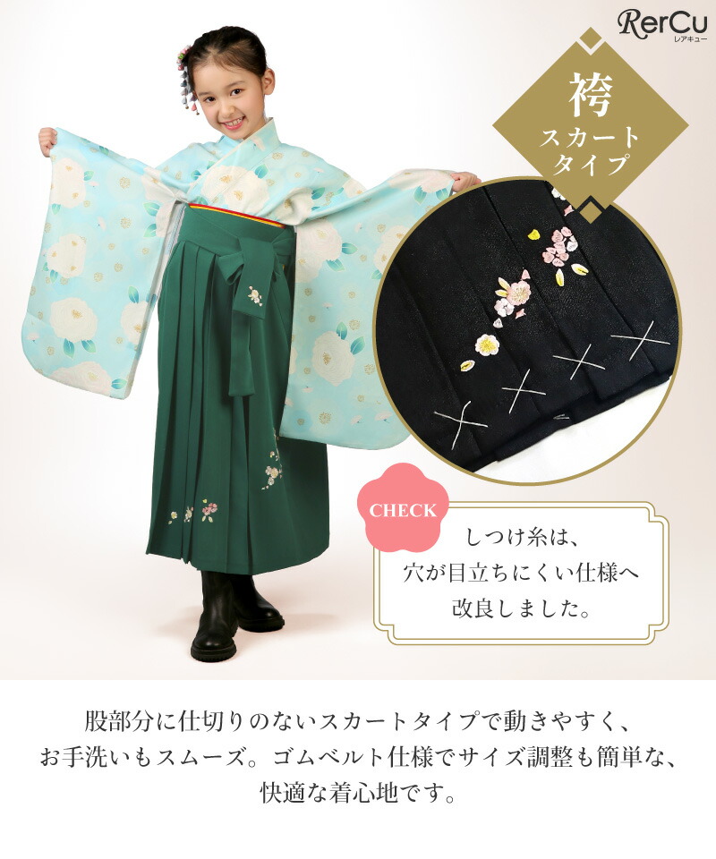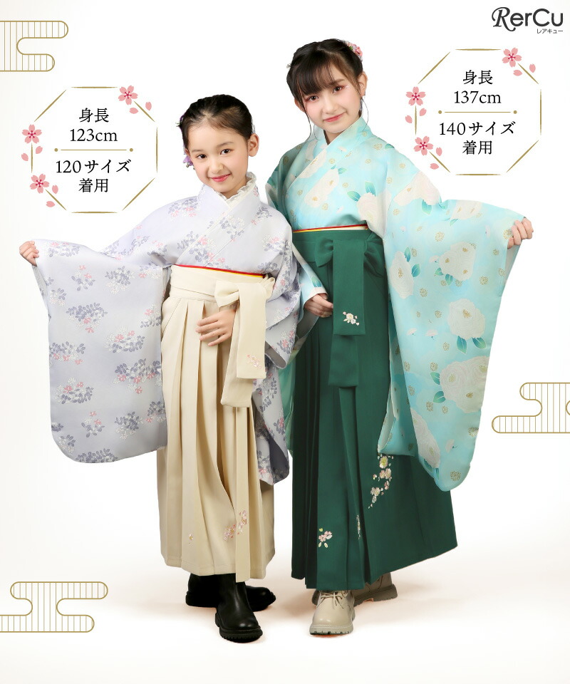簡単袴セット 袴 卒業式 フルセット七 110 120 130 140 150 160 レッド×ブラック パープル×アイボリー ピンク×グリーン サックス×グリーン ブルー×ワインレッド
