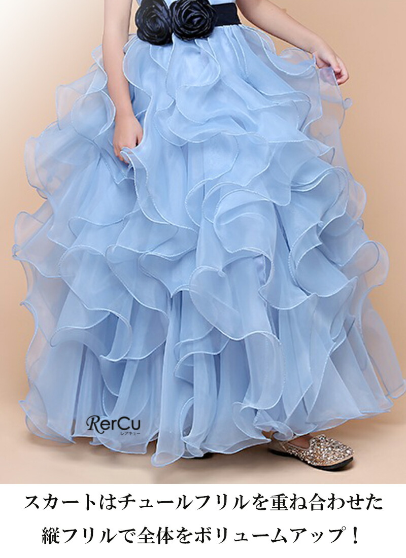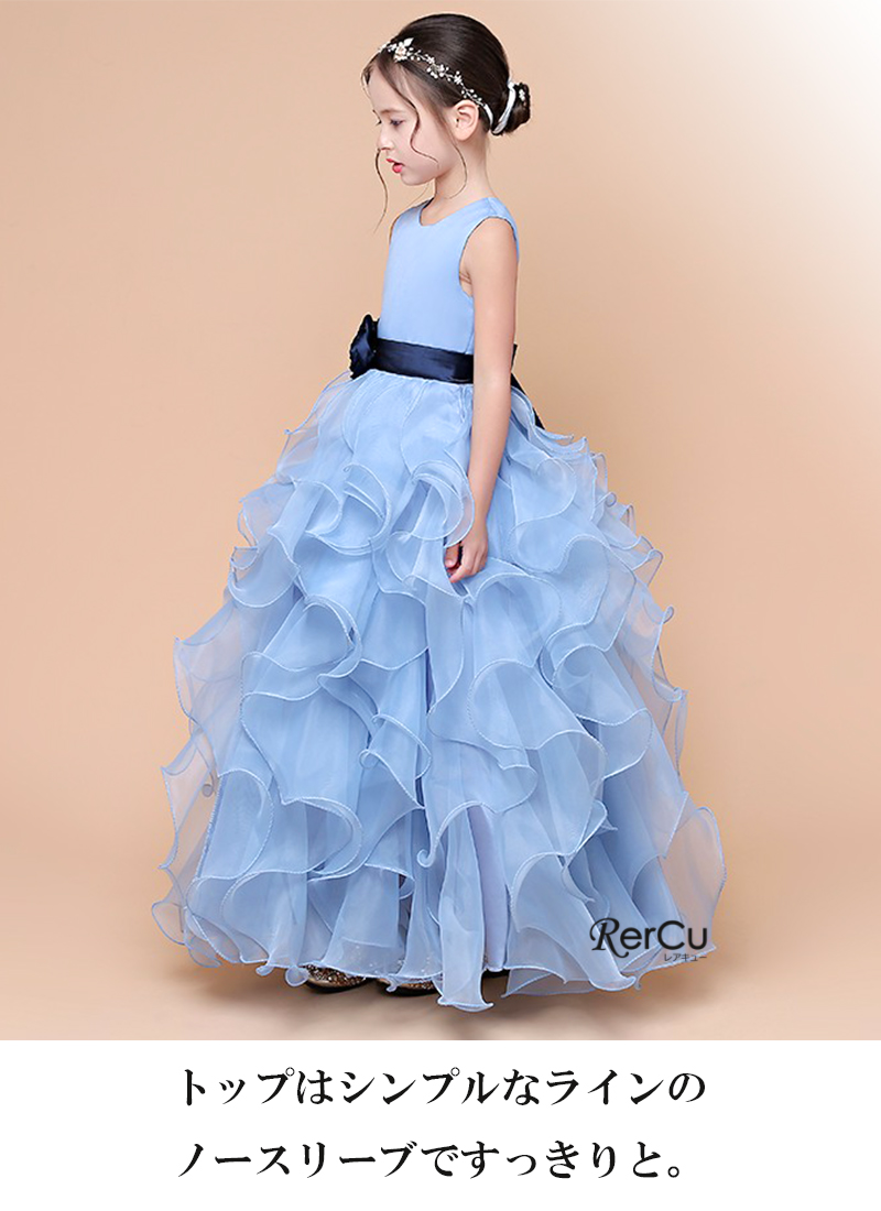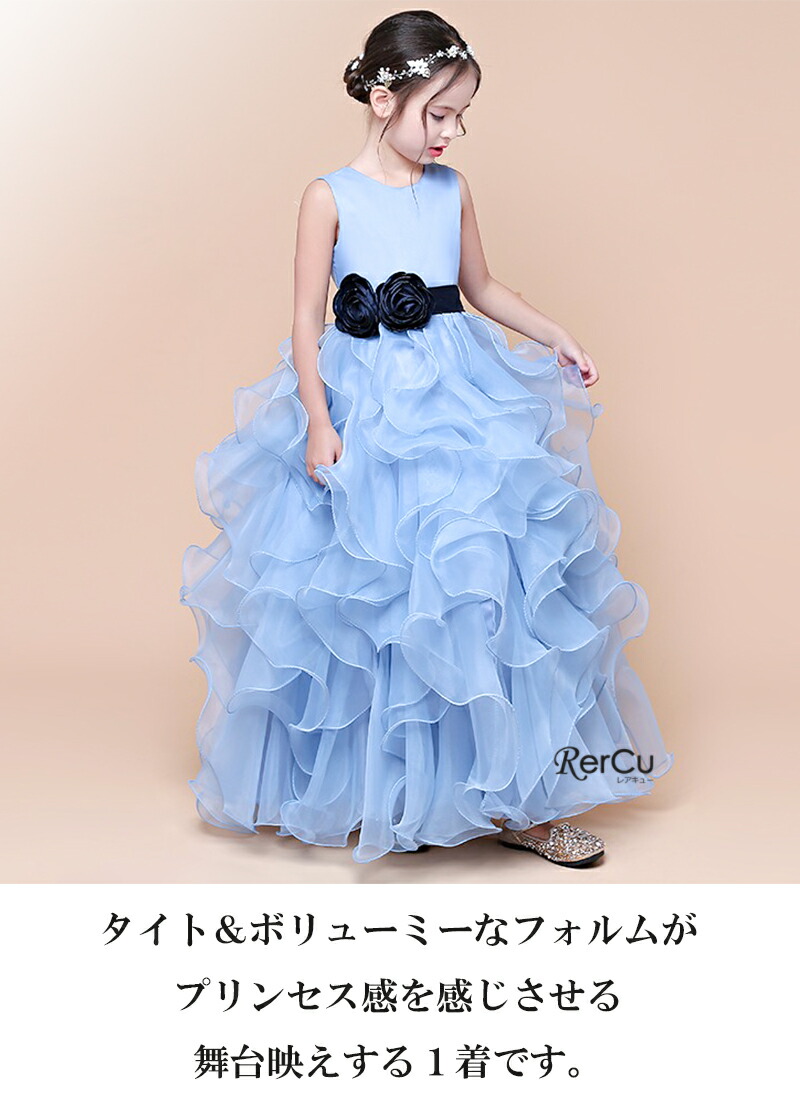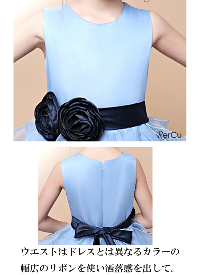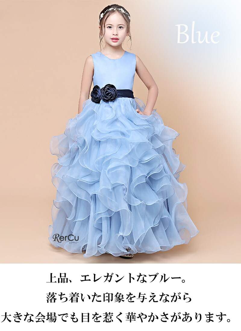 発表会ドレス 女の子 ドレス 発表会 キッズ ドレス 新作 120 130 140 150 160 ブルー ホワイト