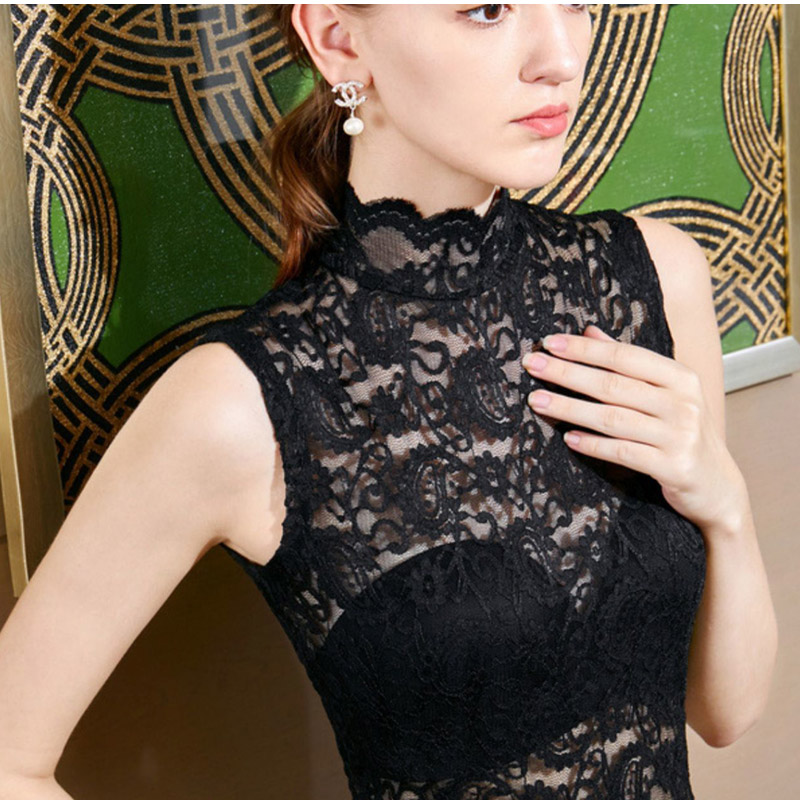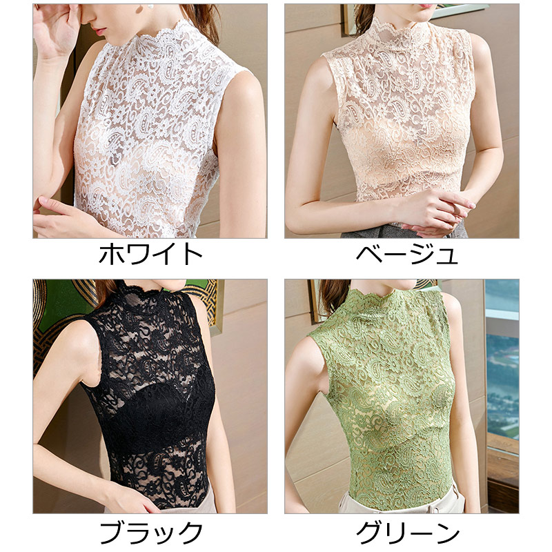 付け襟 レディース ハイネック つけえり レース フェイク襟 総レース 母の日 重ね着風 可愛い レイヤード タンクトップ 彫り ノースリーブ ポスト投函 偽の襟 エレガント きれいめ お 装飾的な襟