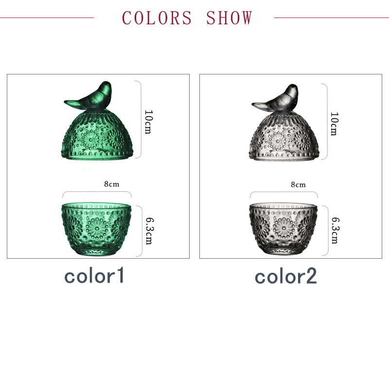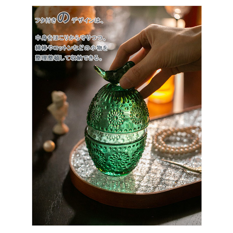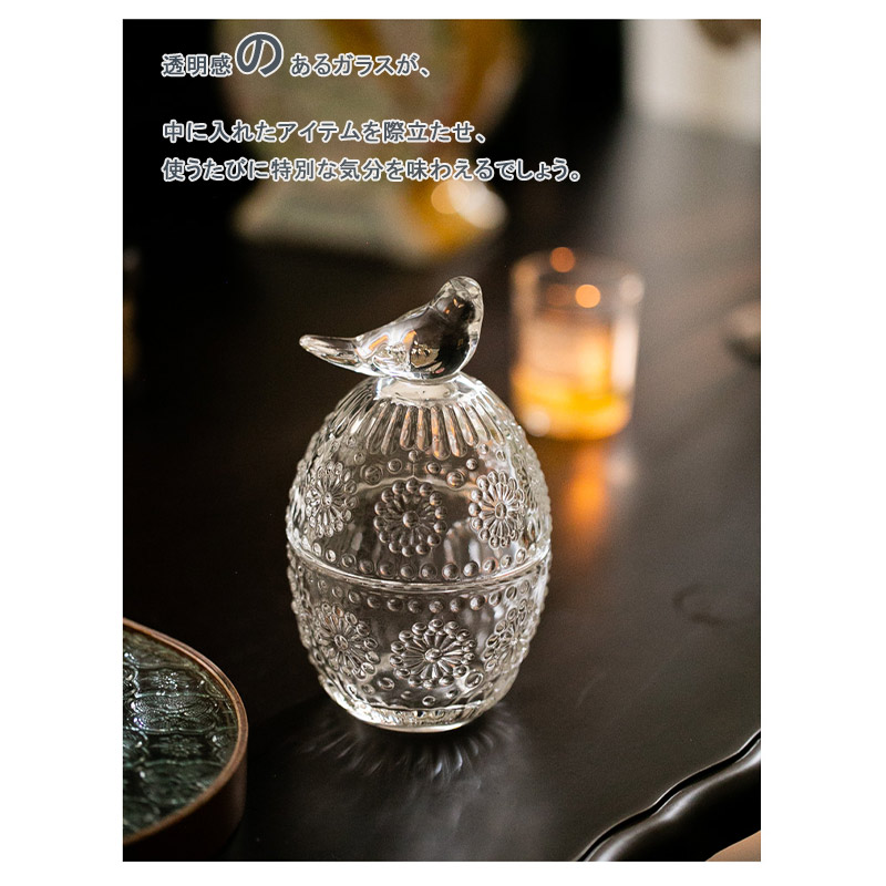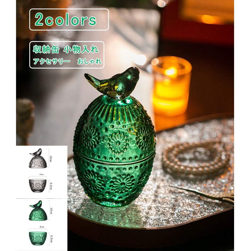 収納缶 ガラス フタ付き レトロ 鳥 color1 color2