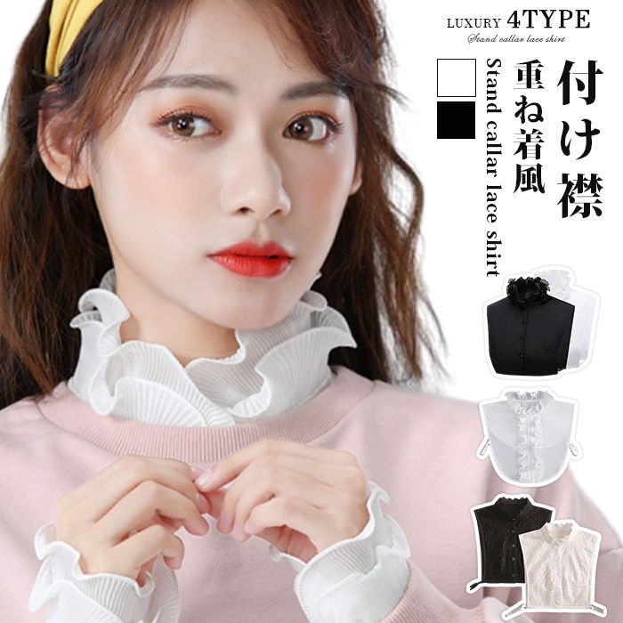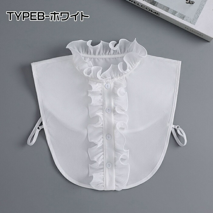 つけ襟 付け襟 レディース フリルスト 付け襟 新登場! TYPEA-ブラック TYPEA-ホワイト TYPEB-ホワイト TYPEC-ブラック TYPEC-ホワイト TYPED-ホワイト