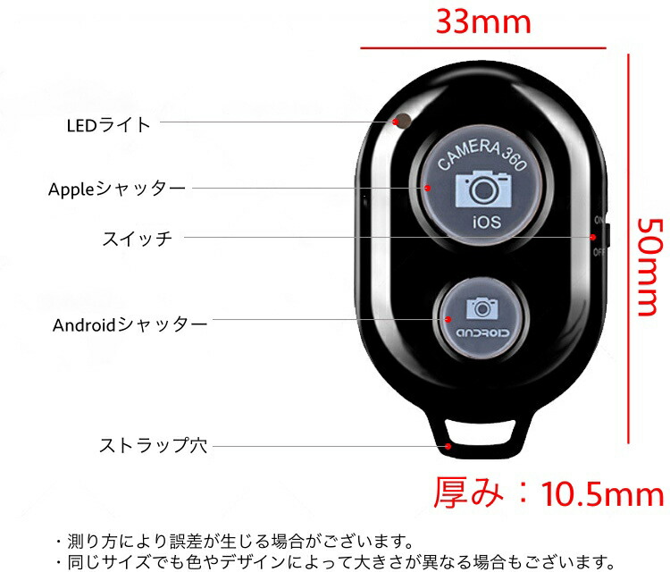 シャッターリモコン カメラリモコン B スマートフォン タブレット 新登場! ブラック ホワイト イエロー ブルー ピンク レッド ライトブルー ライトグリーン パープル