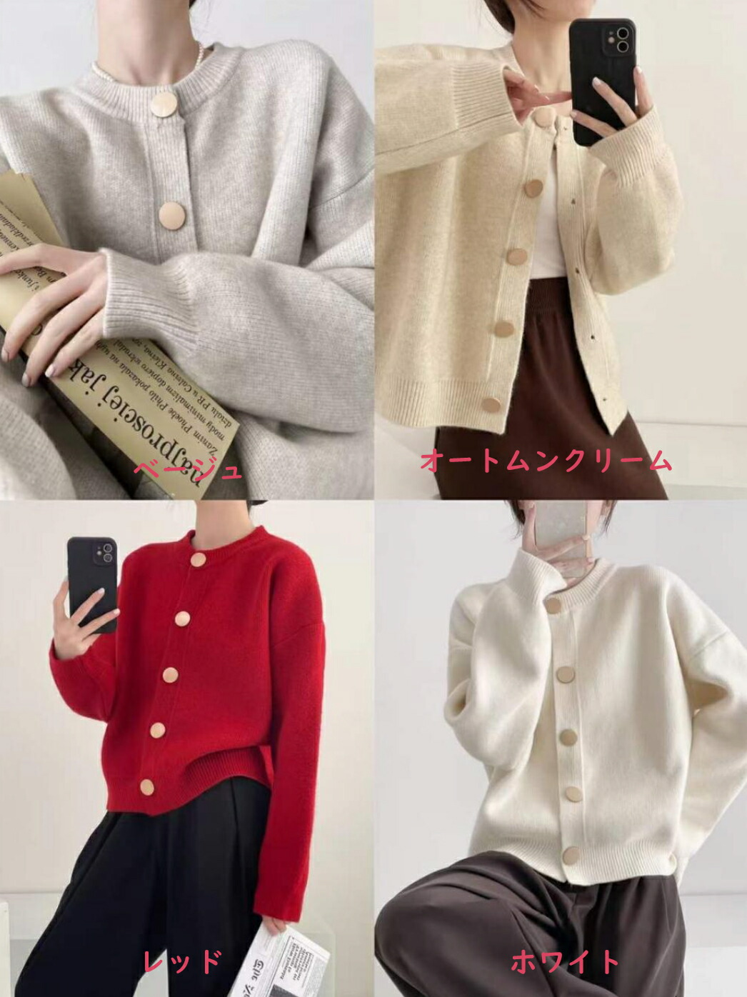 カーディガン レディース ニット セー レディースファッション 続々入荷中 グレー ベージュ オートムンクリーム レッド ホワイト S M L XL