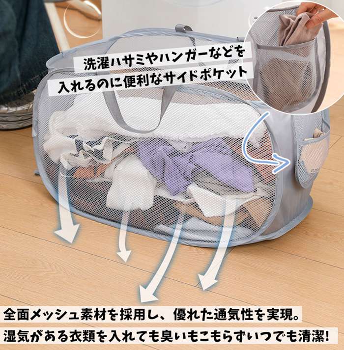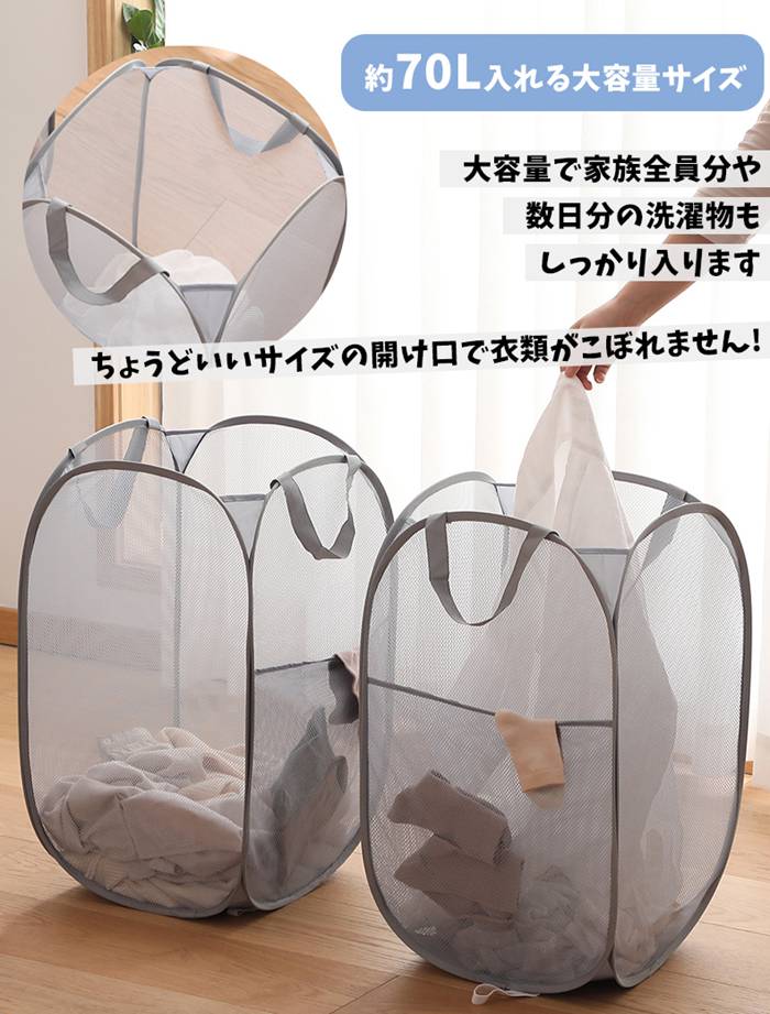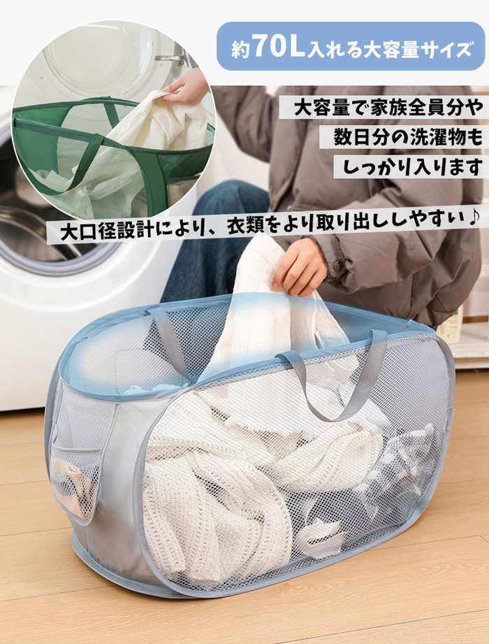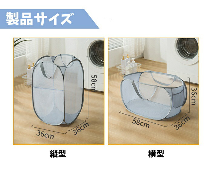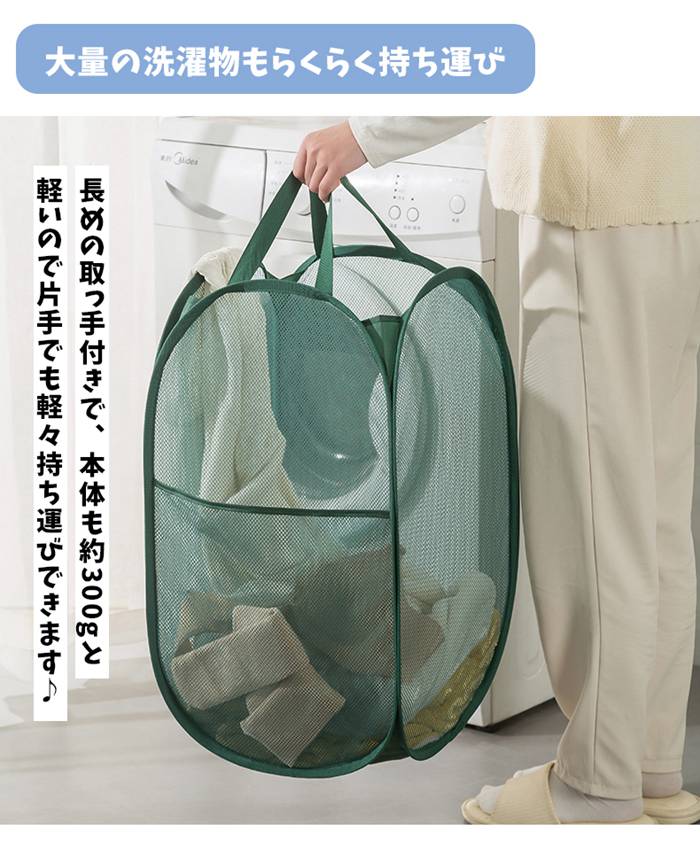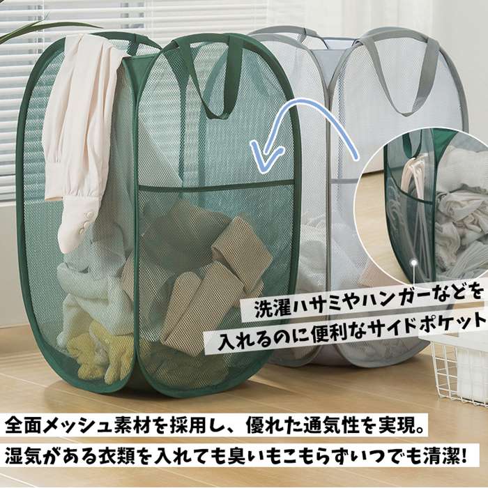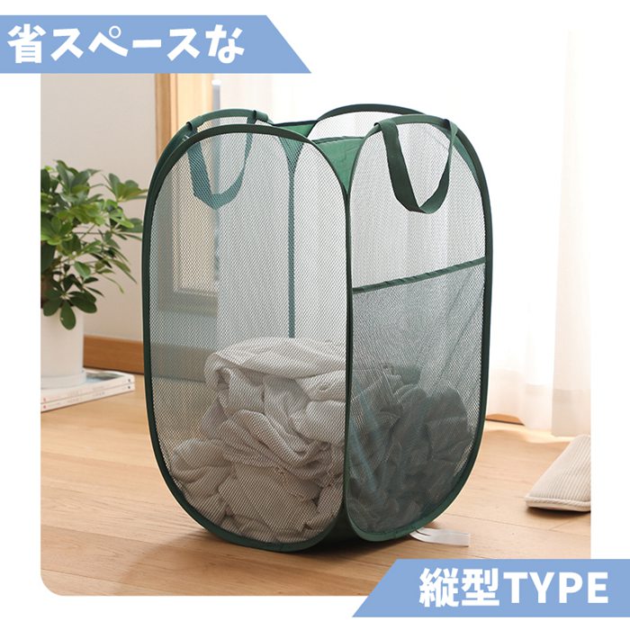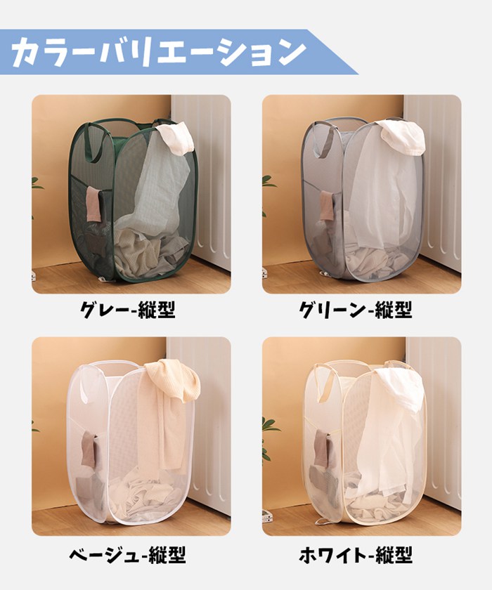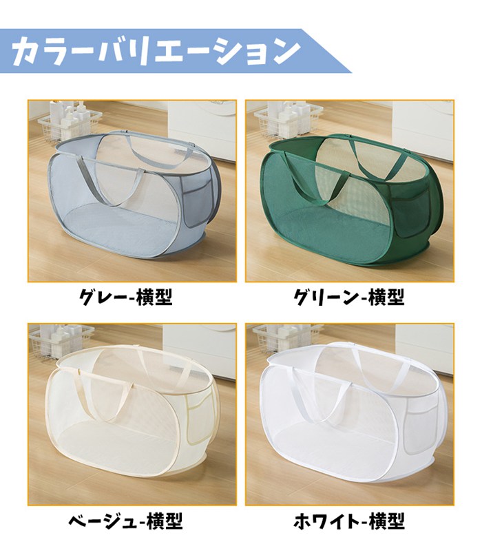 ランドリーバスケット メッシュ 折りた グレー-横型 グリーン-横型 ベージュ-横型 ホワイト-横型 グレー-縦型 グリーン-縦型 ベージュ-縦型 ホワイト-縦型