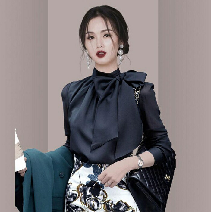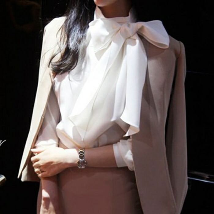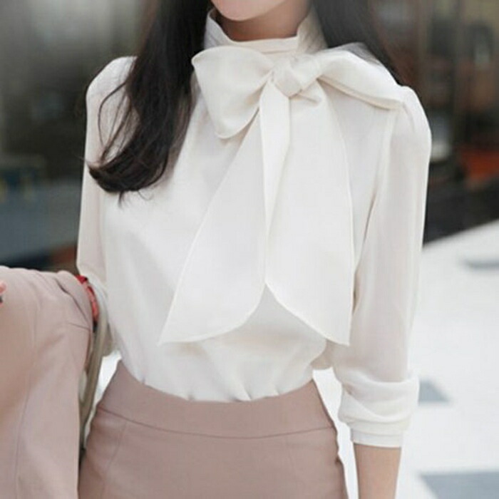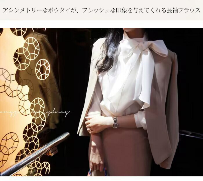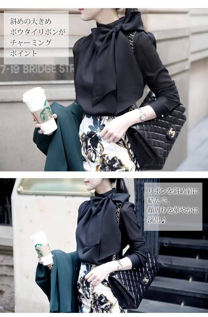 リボン ブラウス 長袖 セレモニー フ レディースファッション 超目玉商品 ブラック ホワイト M L XL 2XL 3XL