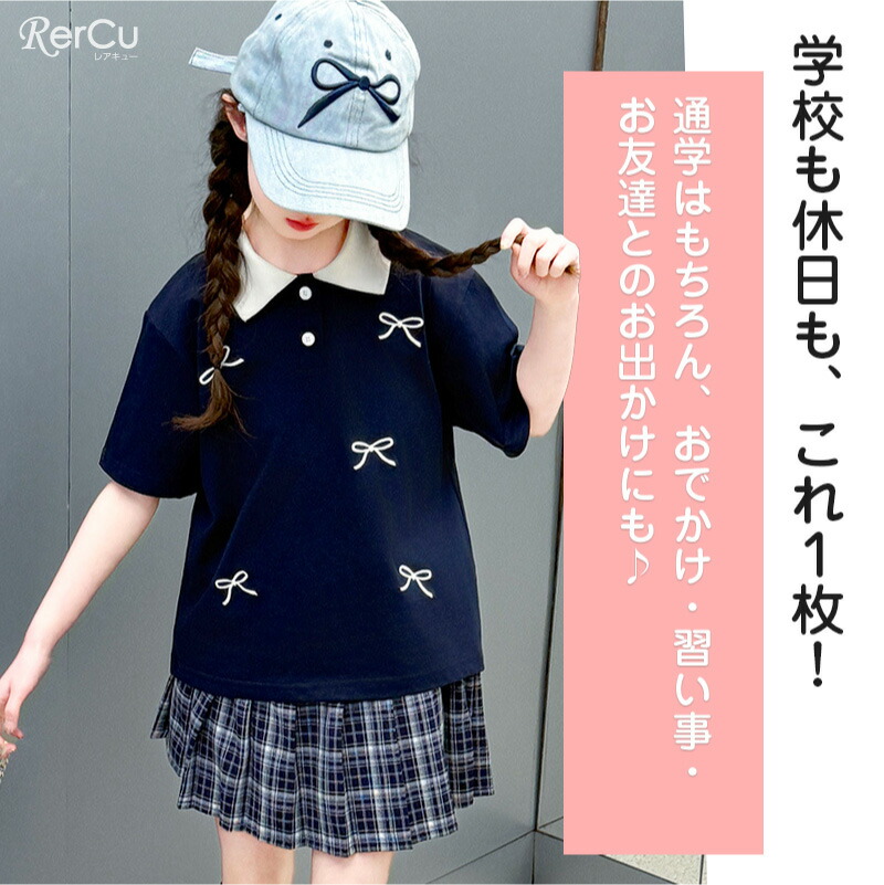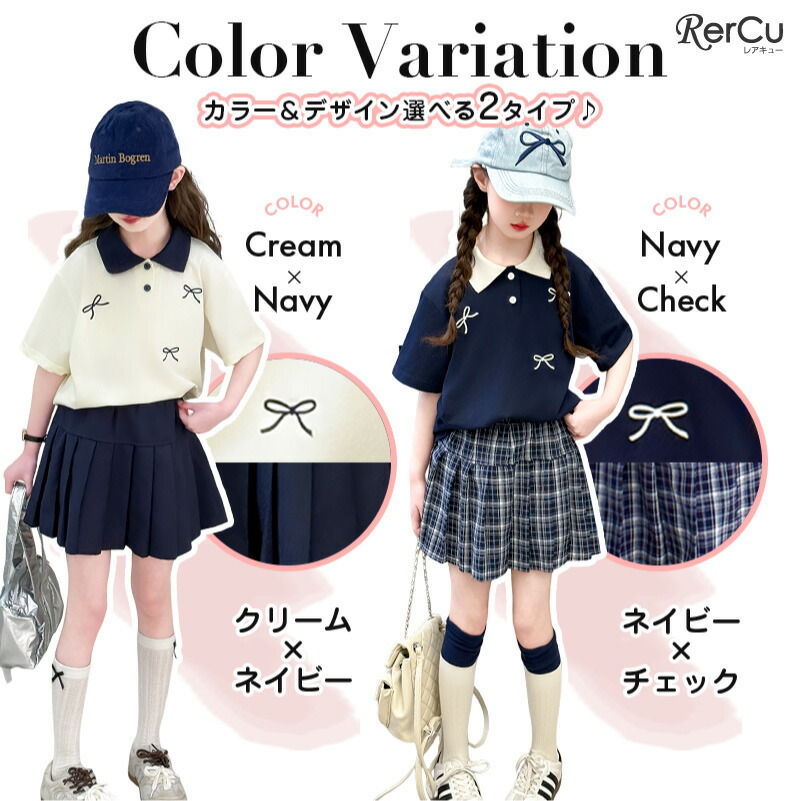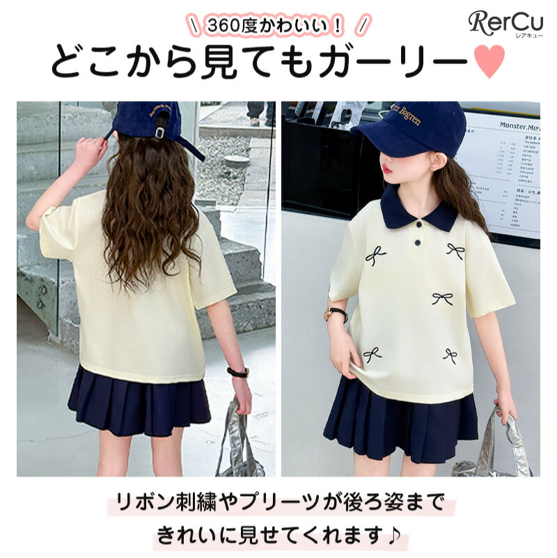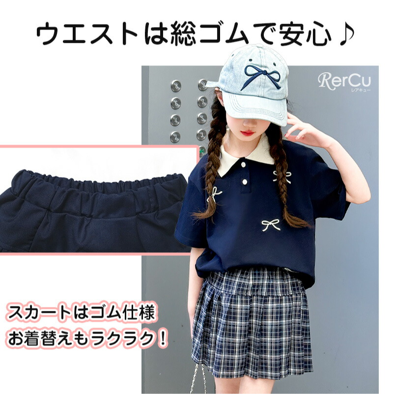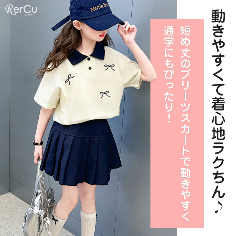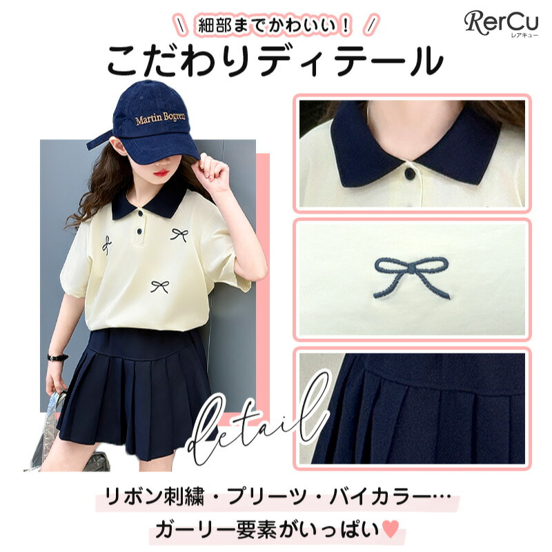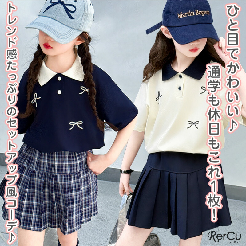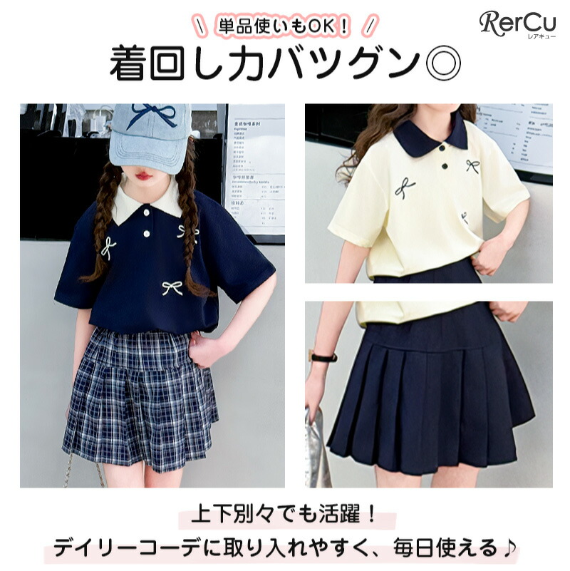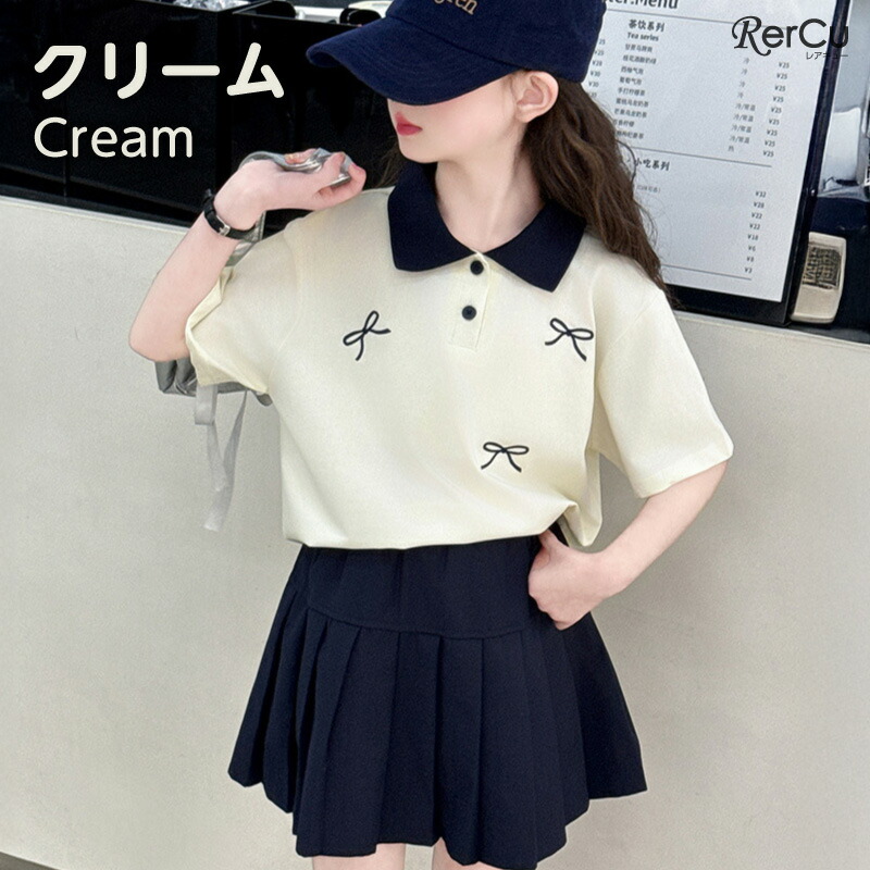 子供服 半袖 スカート ガールズ ポロ キッズ ベビー マタニティ 新登場! 120 130 140 150 160 170 ネイビー クリーム