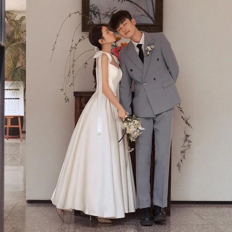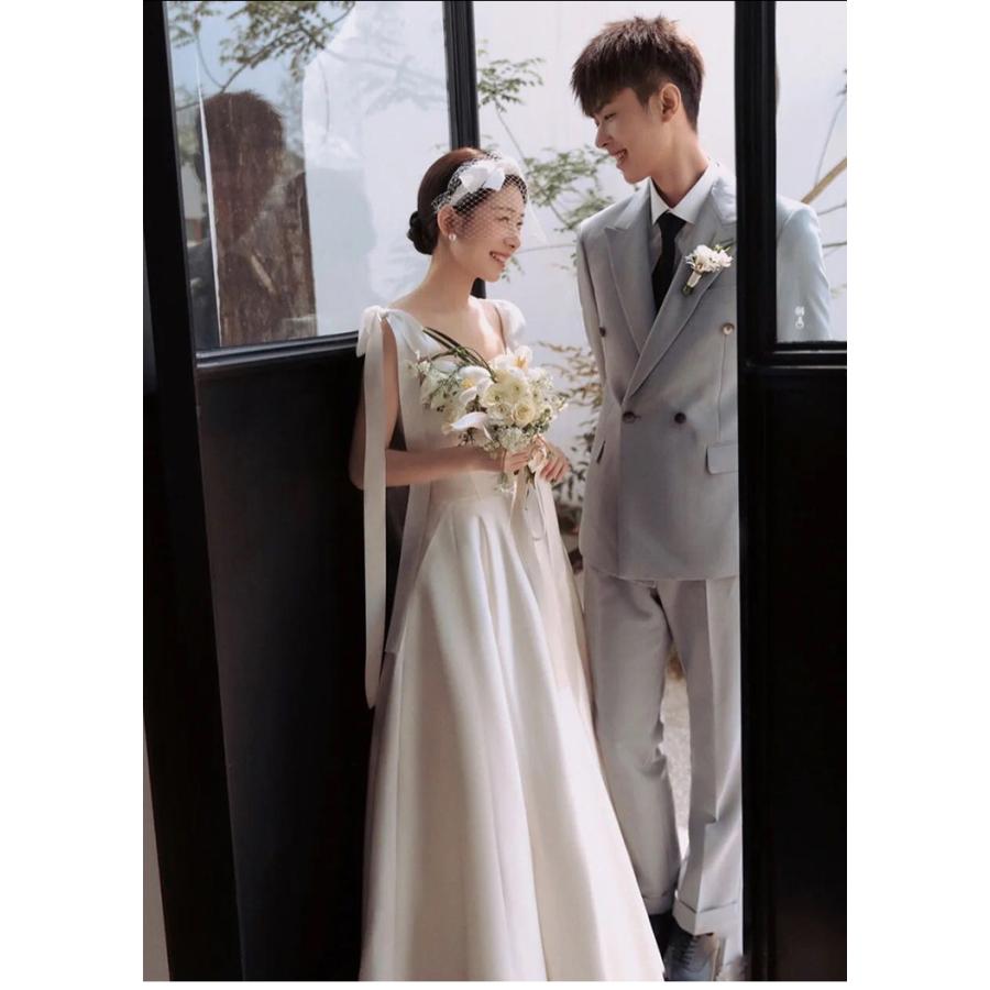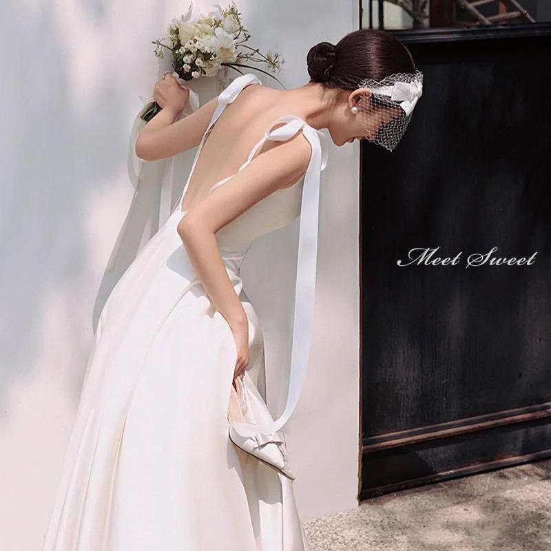 ウェディングドレス ウエディングドレス 二次会 2.5次会 結婚式 披露宴 前撮り 後撮り ブライダル ロングドレス 花嫁 Aラインドレス サテン リボン 海外挙式 フォトウェディング ノースリーブ