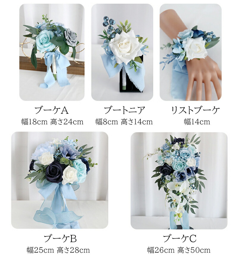 ウェディングブーケ 単品 セット ブー ジュエリー アクセサリー 人気 ブーケA ブーケB ブーケC ブーケのみ ブーケ+ブートニア+リストブーケ
