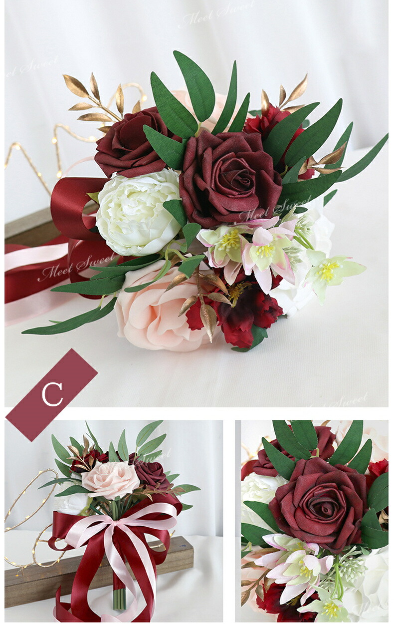 ブーケ 造花 ウェディングブーケ ブラ ブライダルジュエリー アクセサリー ブライダルブーケ 通販 A B C