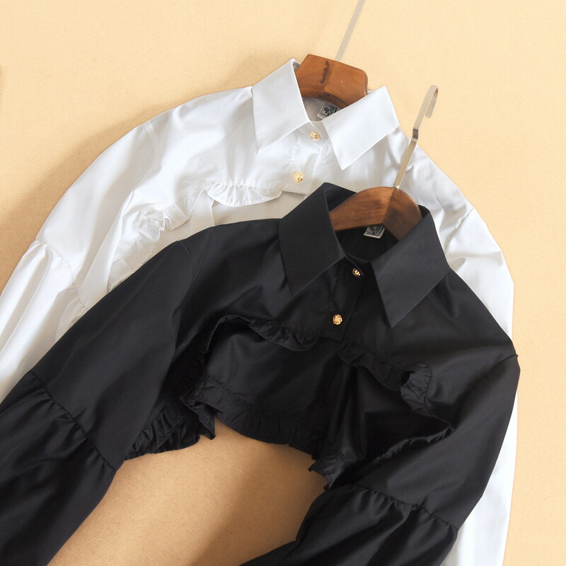 ショートシャツ ショートブラウス 長袖 トップス シャツ ブラウス 超目玉商品