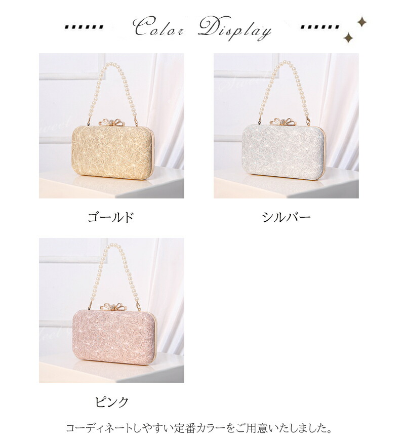 パーティーバッグ 3way レース 花 バッグ 小物 ブランド雑貨 豊富 ゴールド シルバー ピンク