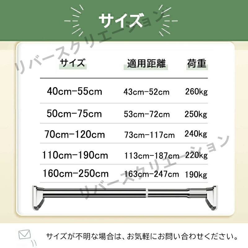 強力突っ張り棒 つっぱり棒 ステンレス 日用品雑貨 文房具 手芸 特集 シルバー ホワイト ブラック 40cm-55cm 50cm-75cm 70cm-120cm 110cm-190cm 160cm-250cm