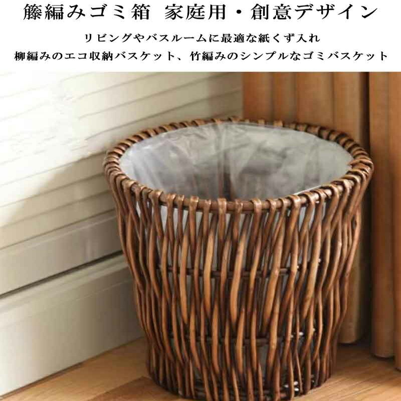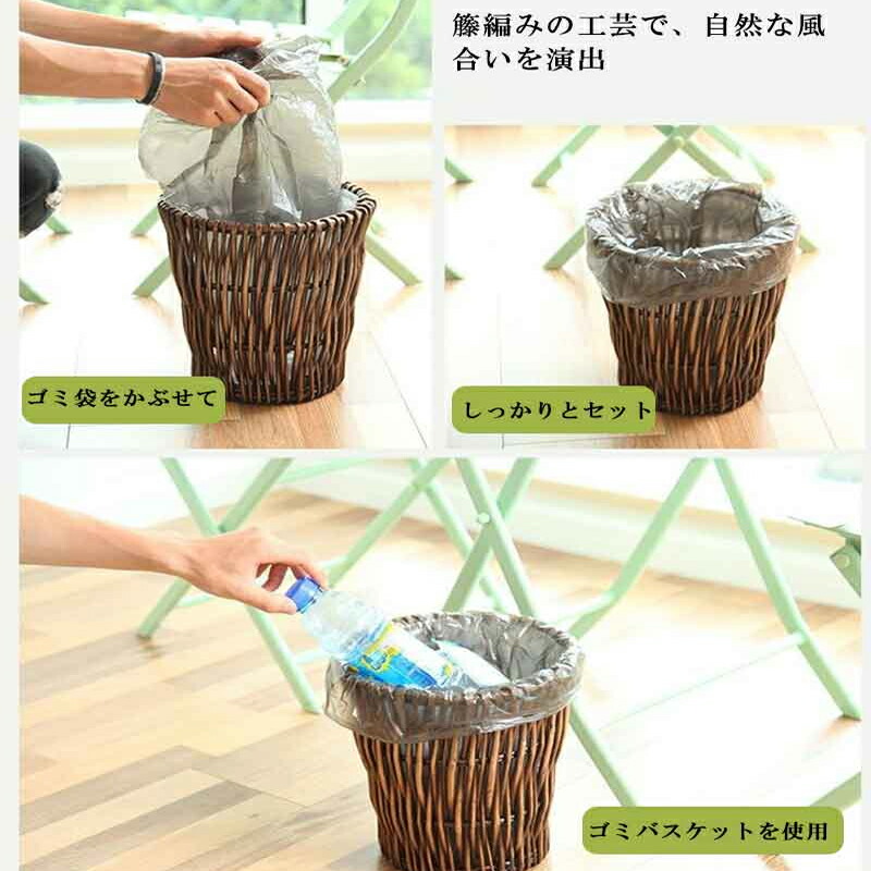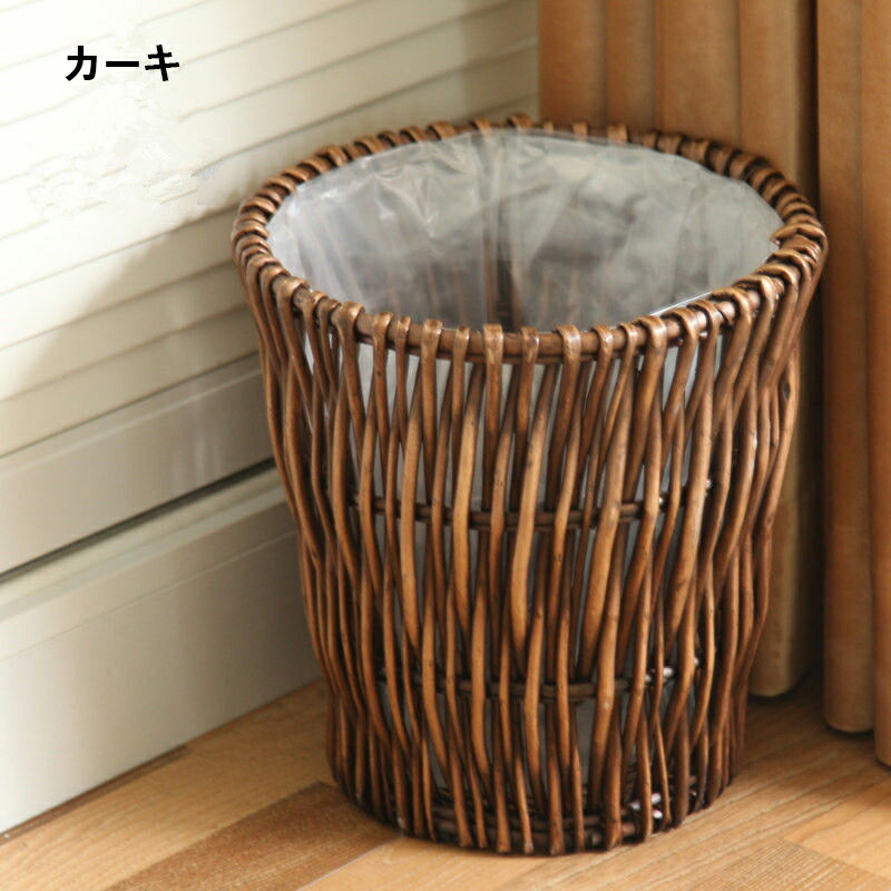 ゴミ箱 藤風 おしゃれ 手編み 籐 廃 ブラウン カーキ