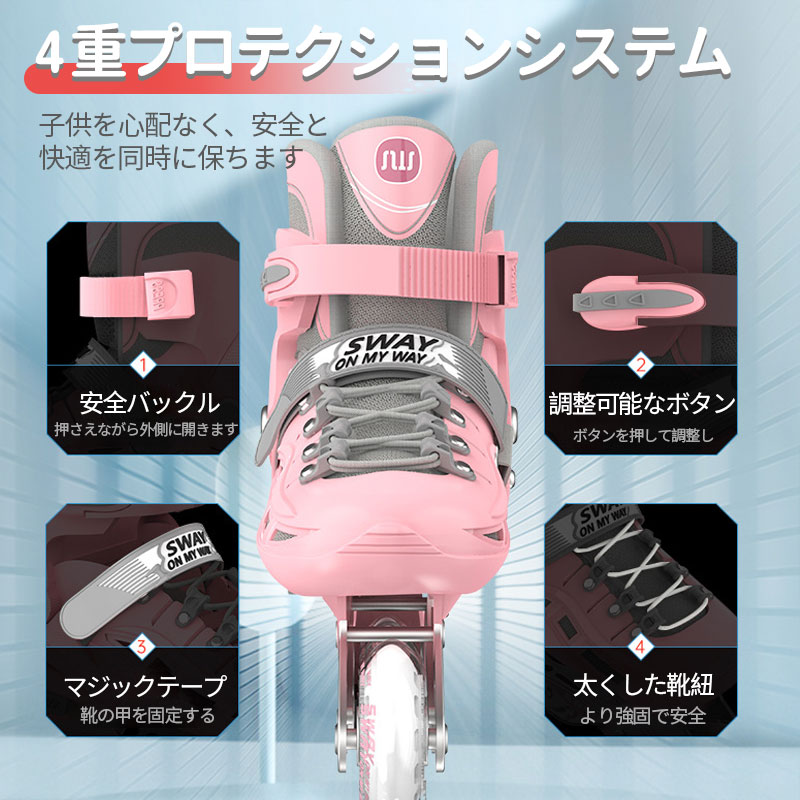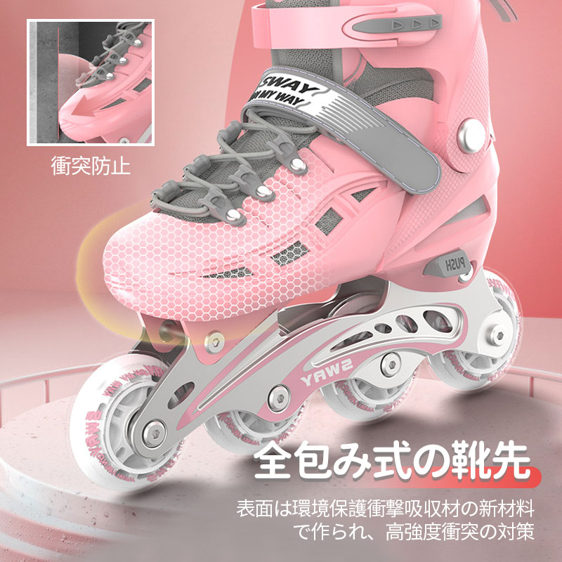 インラインスケート 子供用 初心者向け スケートボード インラインスケート インラインスケート ローラースケート インラインスケート 通販 ピンク グリーン ブラック イエロー ホワイト S(18-20cm) M(20.5-25.5cm) L(23-24.5cm)