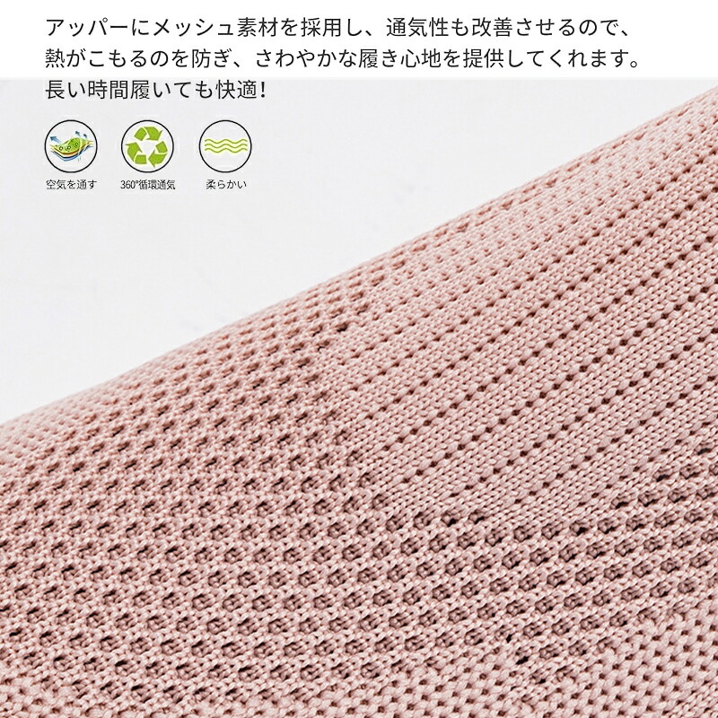 【優れた通気性のメッシュ素材】:アッパーに通気性の良いメッシュ素材は網目状で隙間があるため、穴から風を通して熱を逃がすのでムレにくく、軽量であるという特徴があります。快適な履き心地を提供してくれ、オールシーズンも履けます。通気性も良いので素足で履いても蒸れにくくさらっとしていて気持ち良いです。立ち仕事の方におすすめです。タウンユースからウォーキングなど幅広く使える1足です。