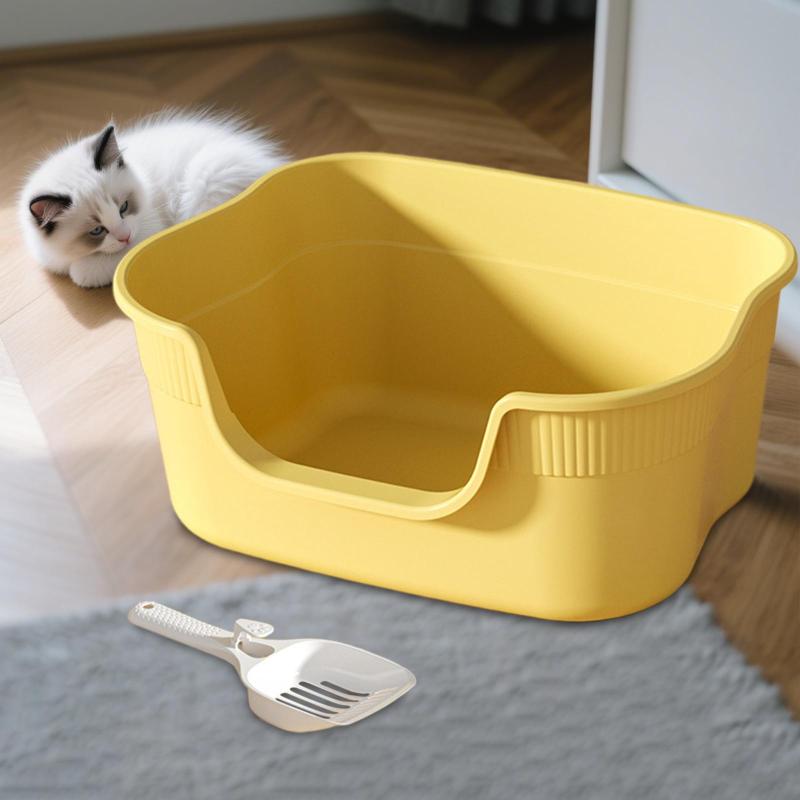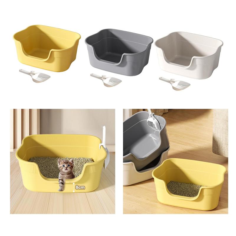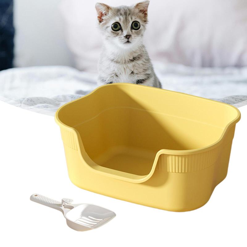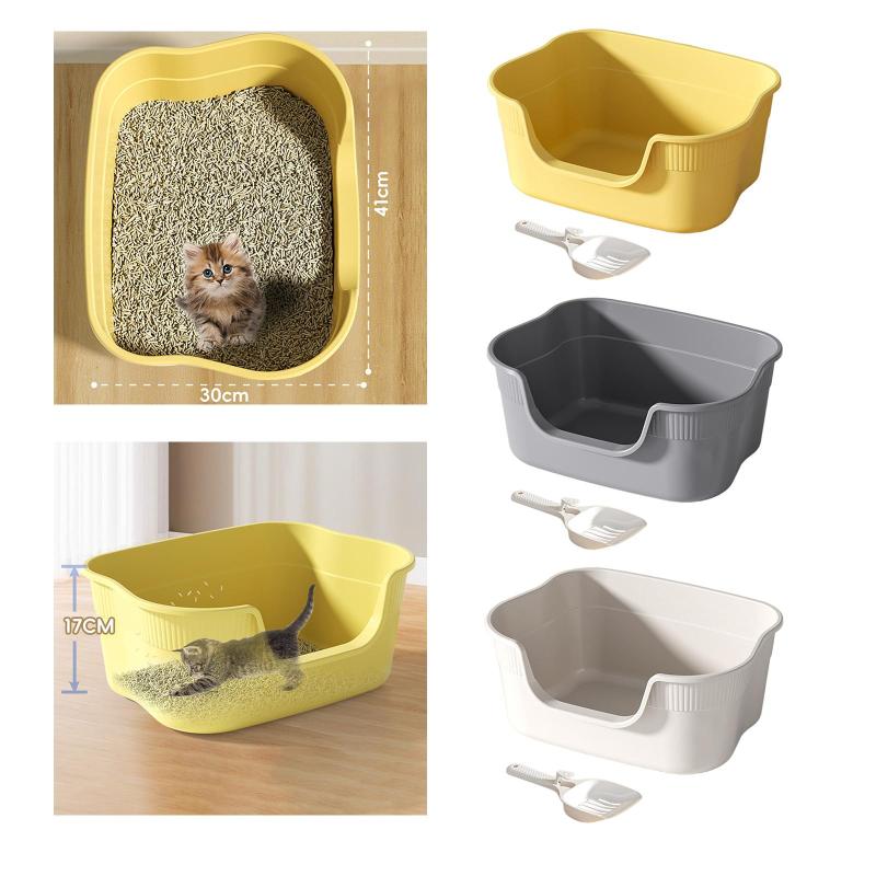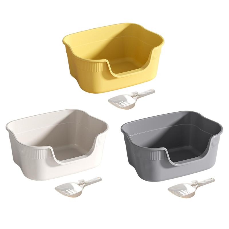 屋内猫用オープントイレコンテナ.低い入 猫用品 トイレ用品 砂取りマット 人気 黄色 ライトグレー ベージュ