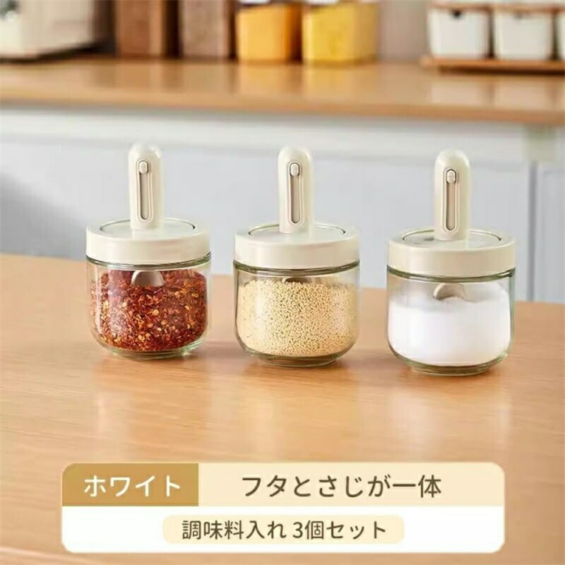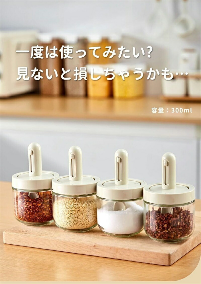 調味料入れ スプーン付き ガラス 密閉 キッチン用品 食器 調理器具 豊富 1個セット 2個セット 3個セット 4個セット